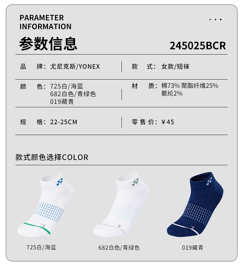 YONEX 尤尼克斯 羽毛球袜 女款 运动短袜 加厚毛巾底 245025BCR 22-25cm 本品参加11.11同价抢先购满129减20 299减50 499减80 999减150 1299减200元大促!