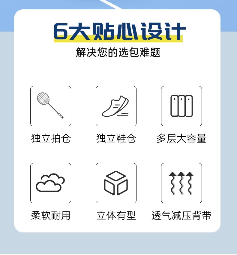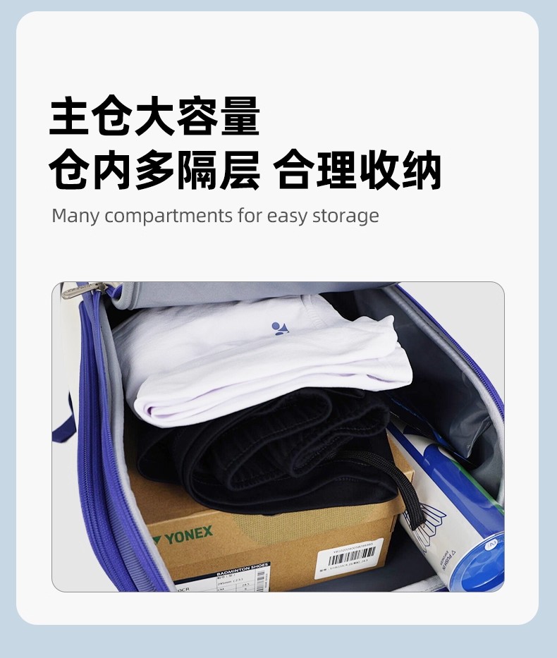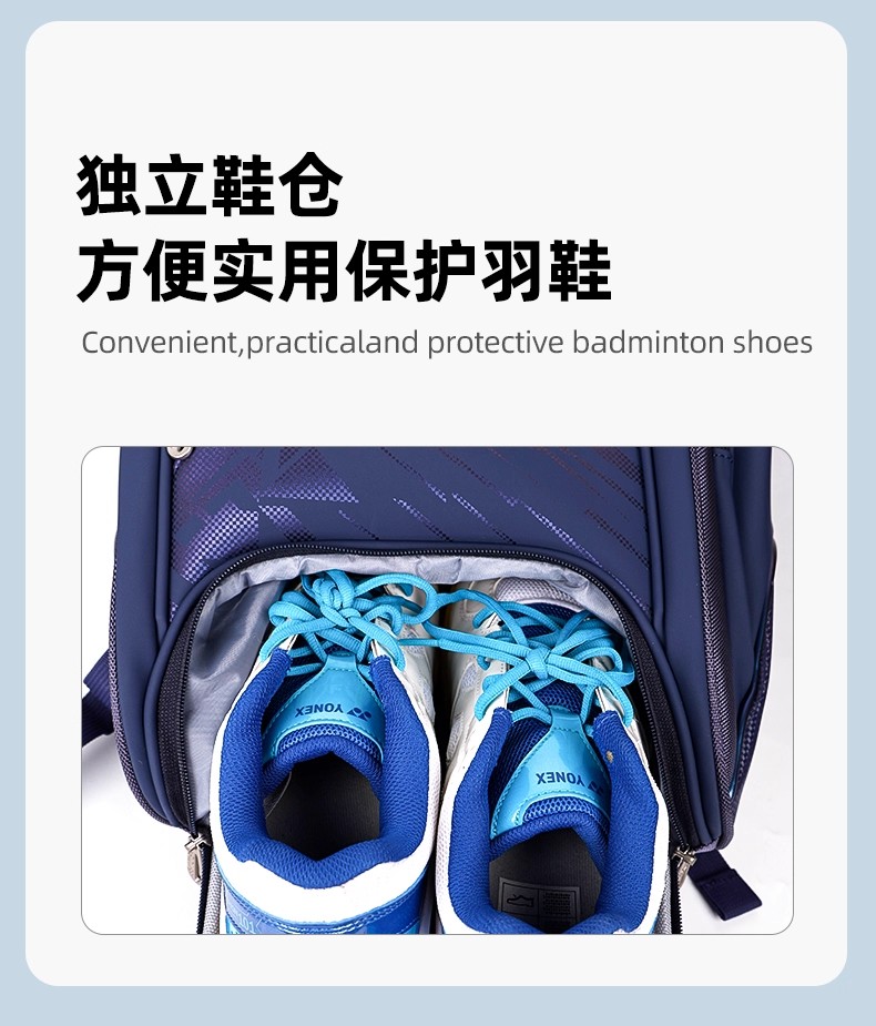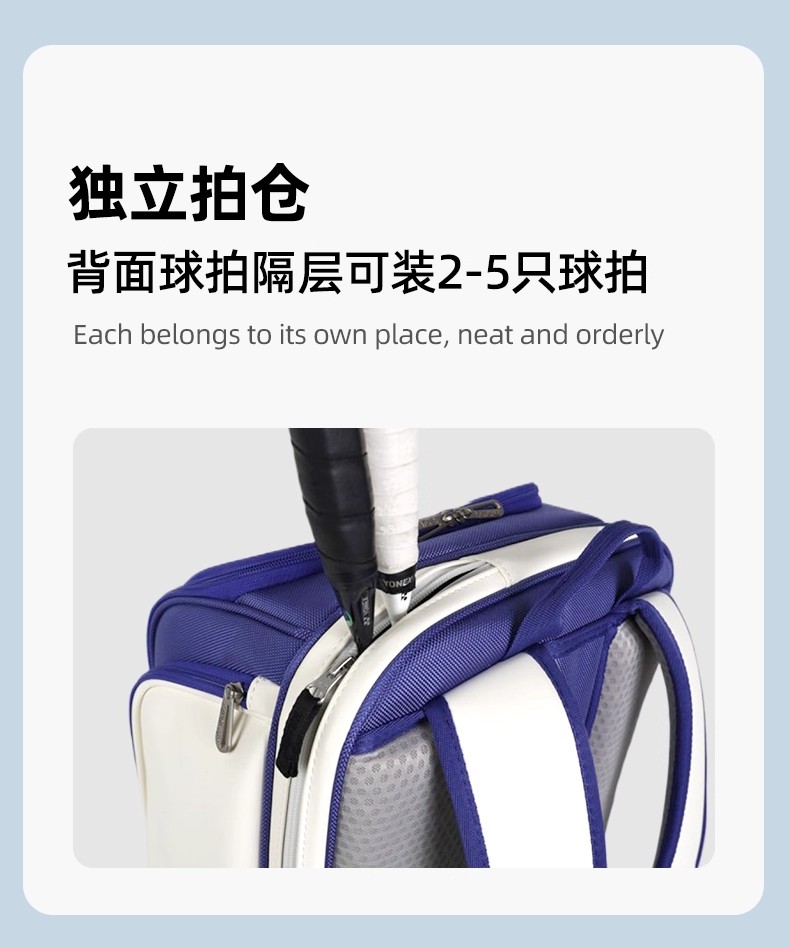 独立拍仓 ,背面球拍隔层可装2-5支球拍;