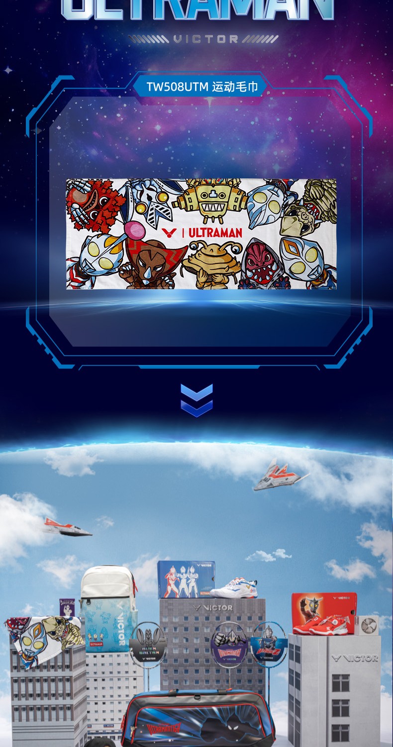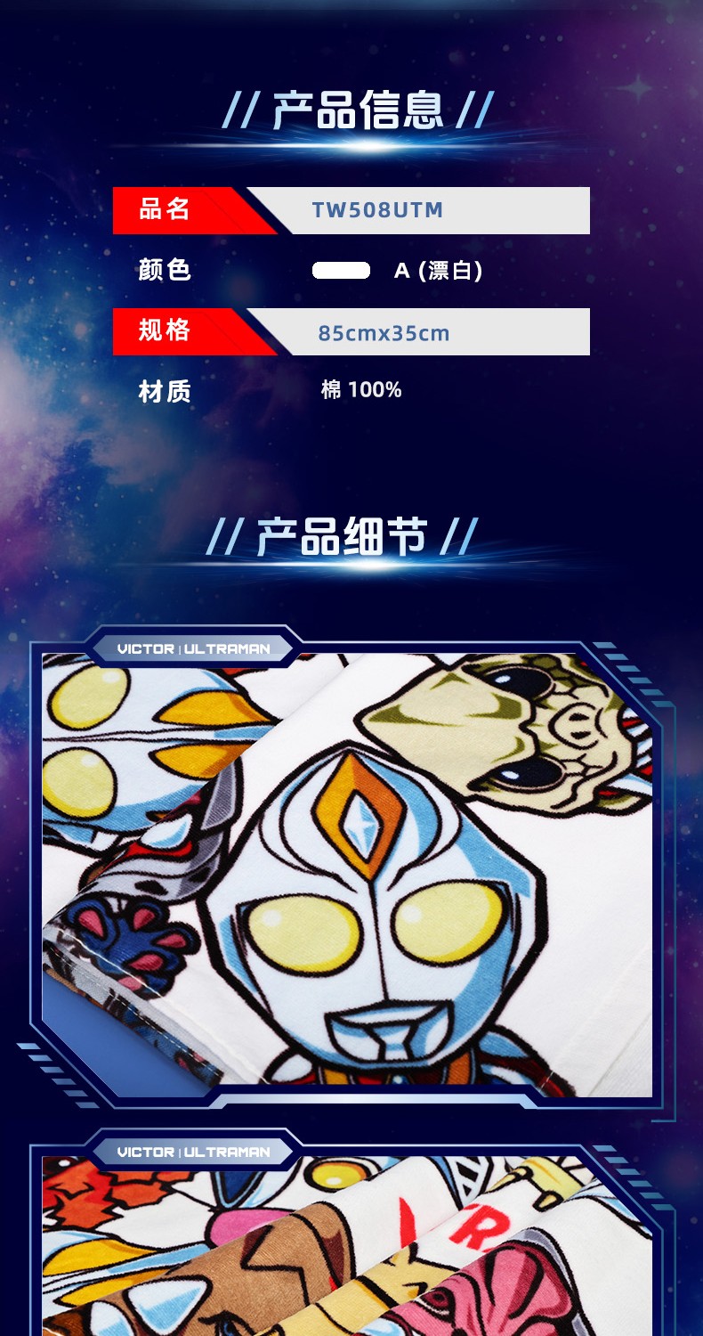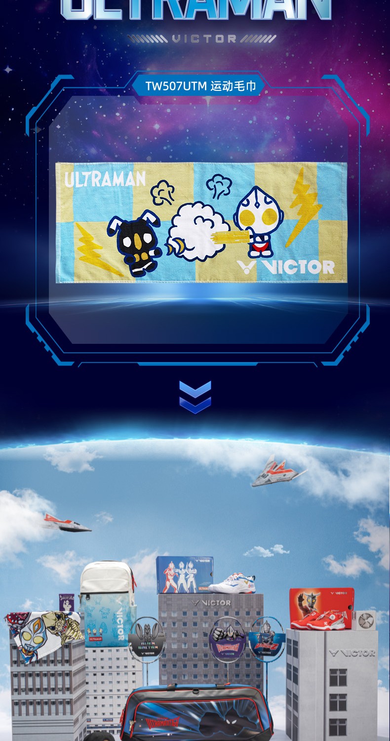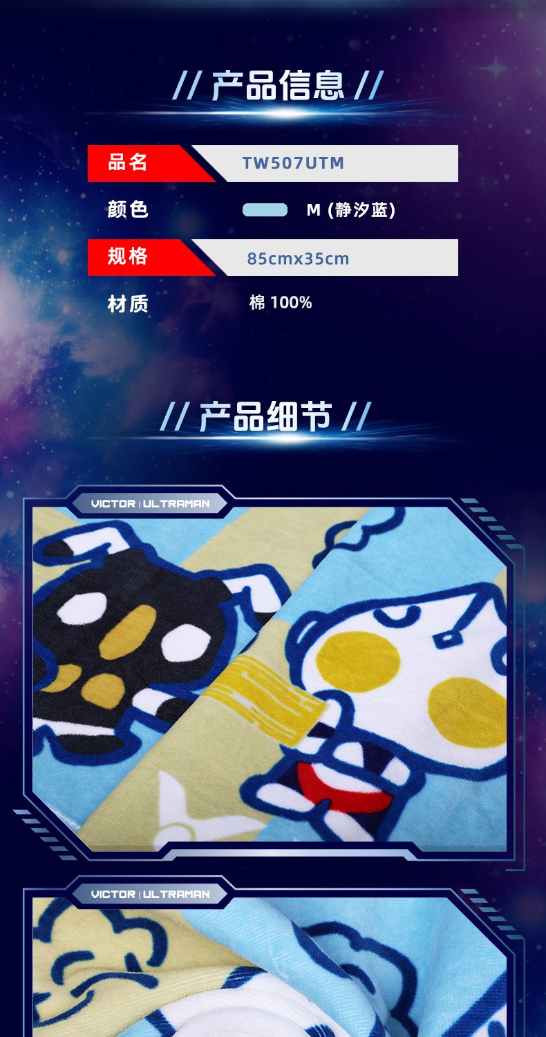 VICTOR 威克多 运动毛巾 奥特曼联名系列 纯棉吸汗 TW507UTM TW508UTM 单条装 85*35cm 纯棉擦汗巾 奥特曼联名限定款