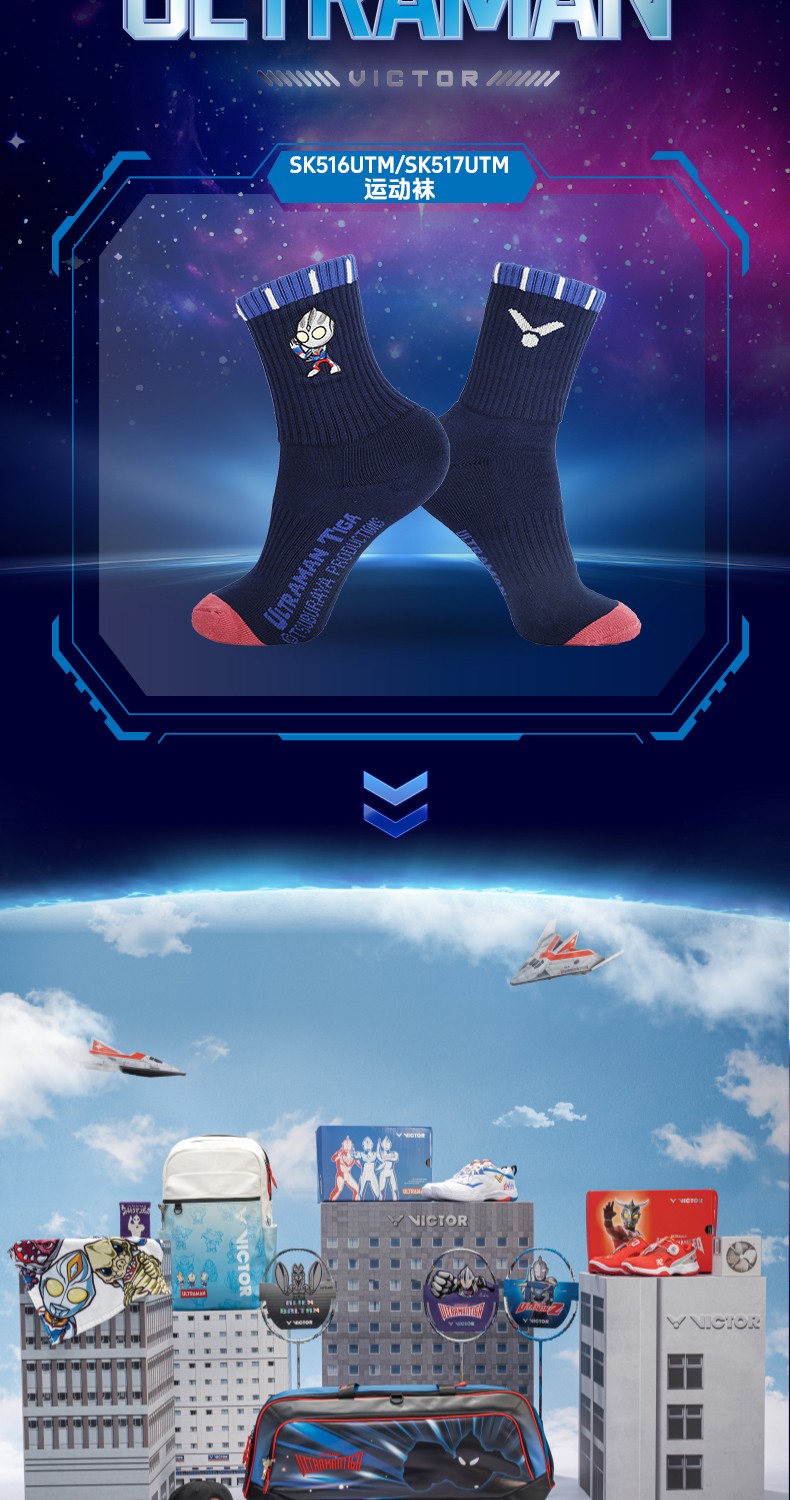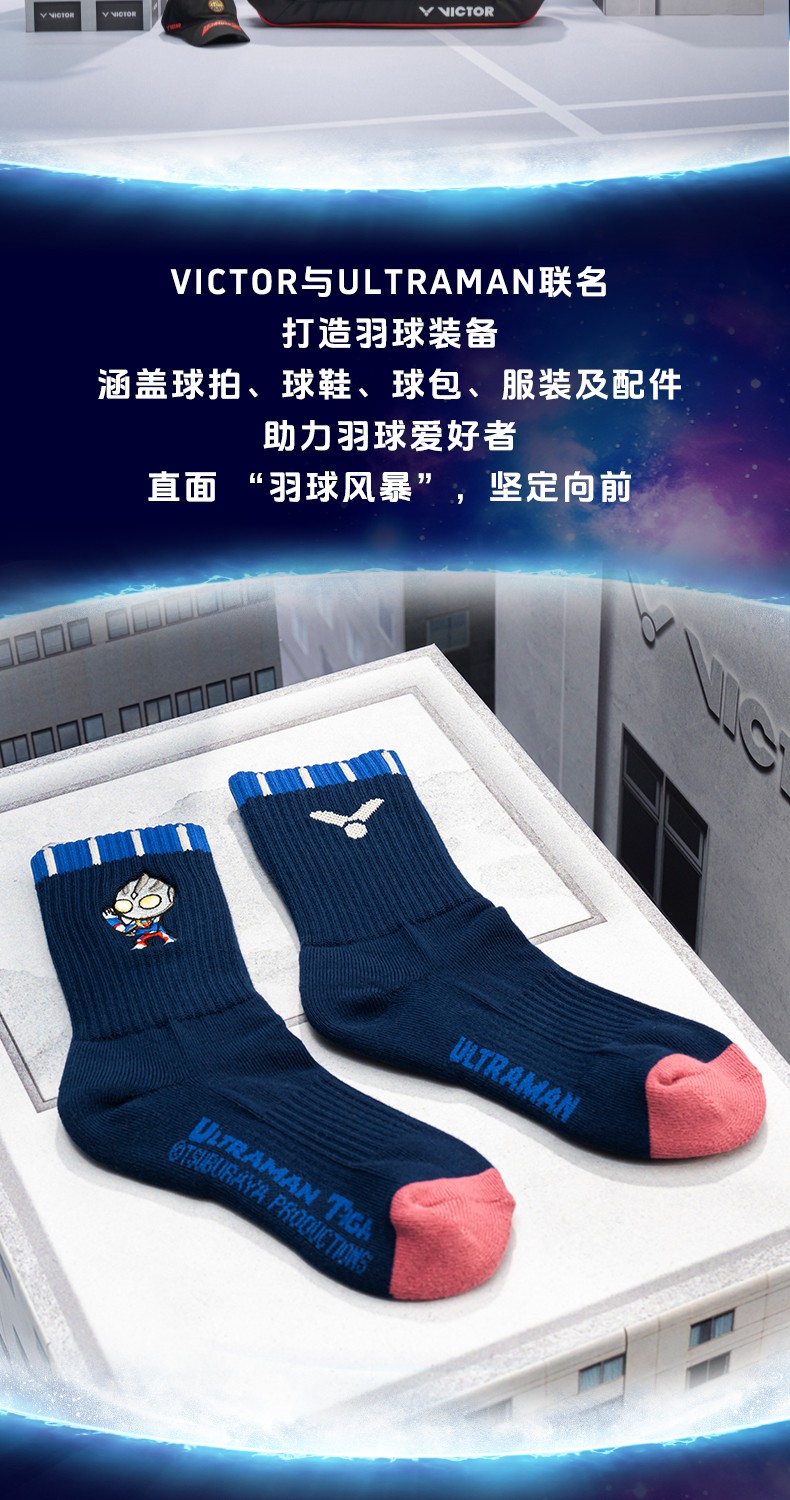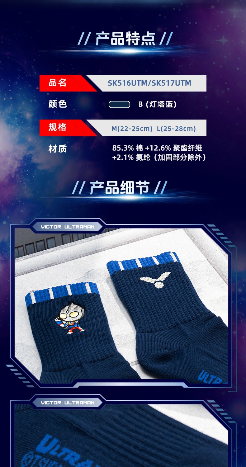VICTOR 威克多 羽毛球袜 奥特曼联名系列 男女款 吸汗透气运动袜 SK516UTM SK517UTM B 灯塔蓝 一双装 吸汗透气 防滑耐磨