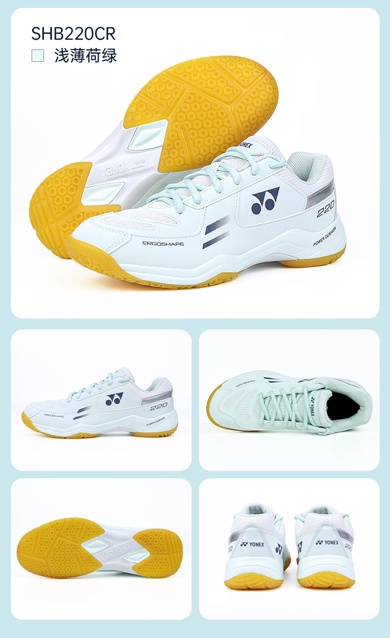 尤尼克斯YONEX 羽毛球鞋 SHB220CR 男女同款超轻透气减震耐磨专业比赛运动鞋 浅薄荷绿 轻盈耐磨,包裹舒适,防滑减震