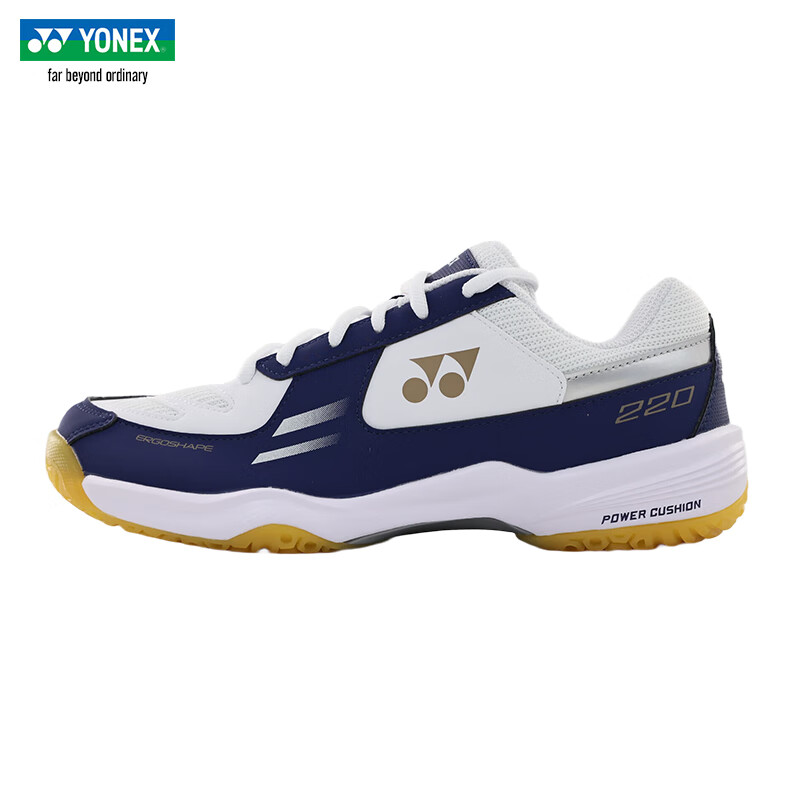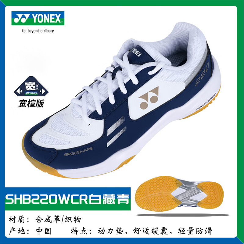 尤尼克斯YONEX 羽毛球鞋 SHB220WCR 男女同款超轻透气减震耐磨专业比赛运动鞋 宽楦 白/藏青 轻盈耐磨,包裹舒适,防滑减震,宽楦鞋型