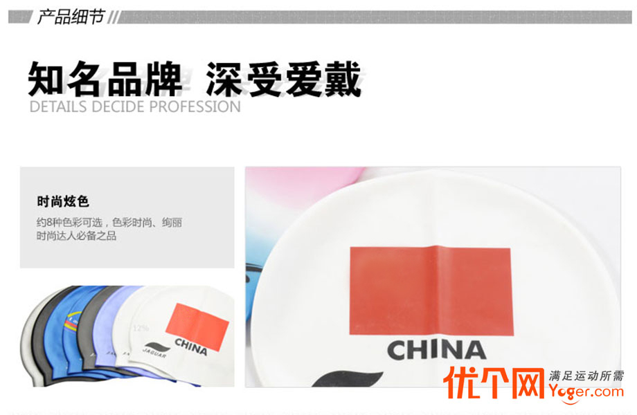 捷佳CP200A国旗印花白色泳帽(简约时尚,超高性价比,彰显爱国范儿)产品细节-?杓?/strong>