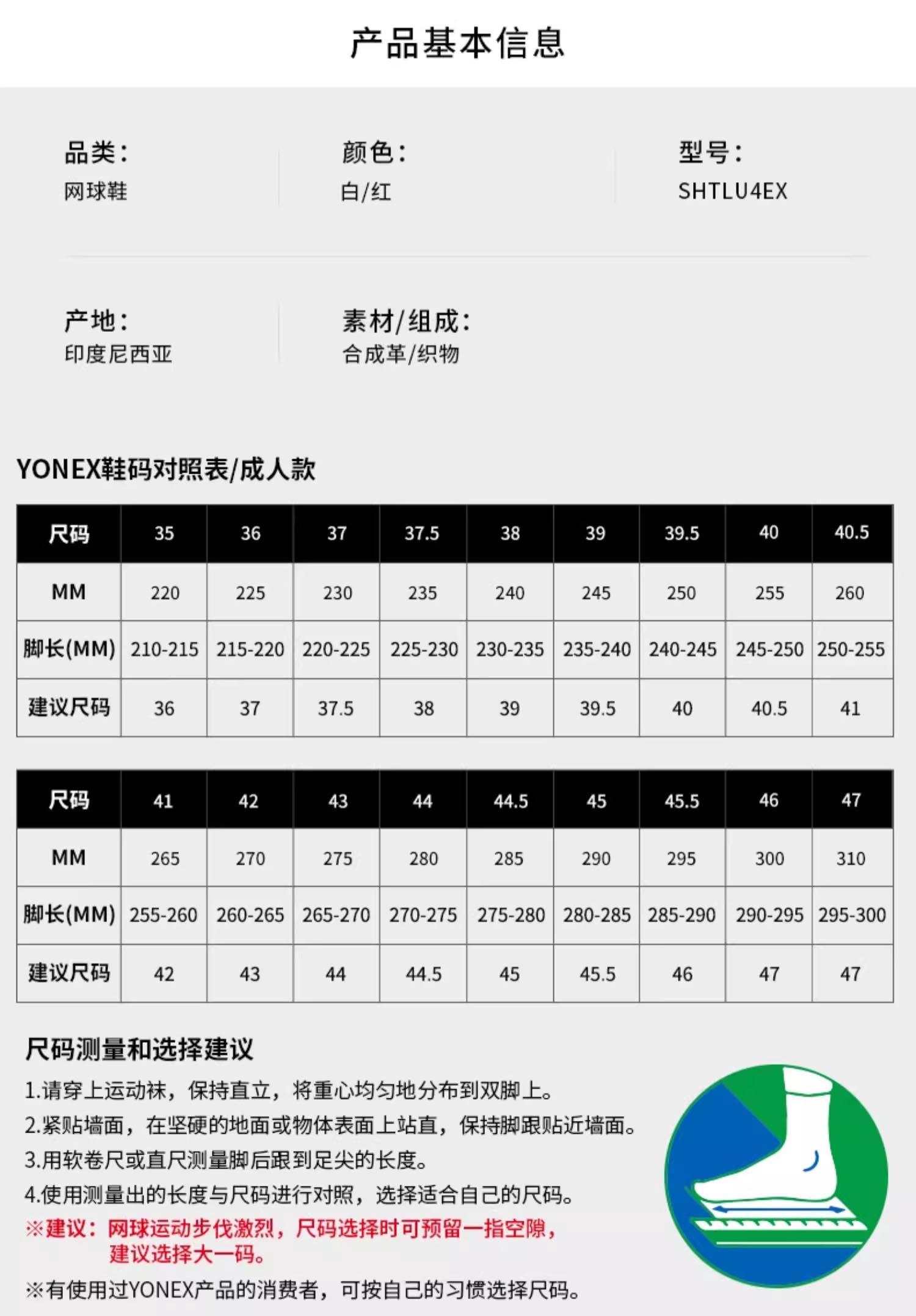 YONEX 尤尼克斯网球鞋 SHTLU4EX_114 白/红 2024年新款入门网球鞋 Lumio 4
