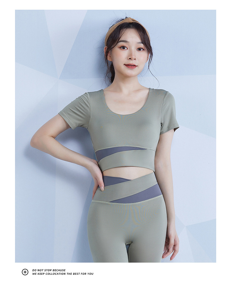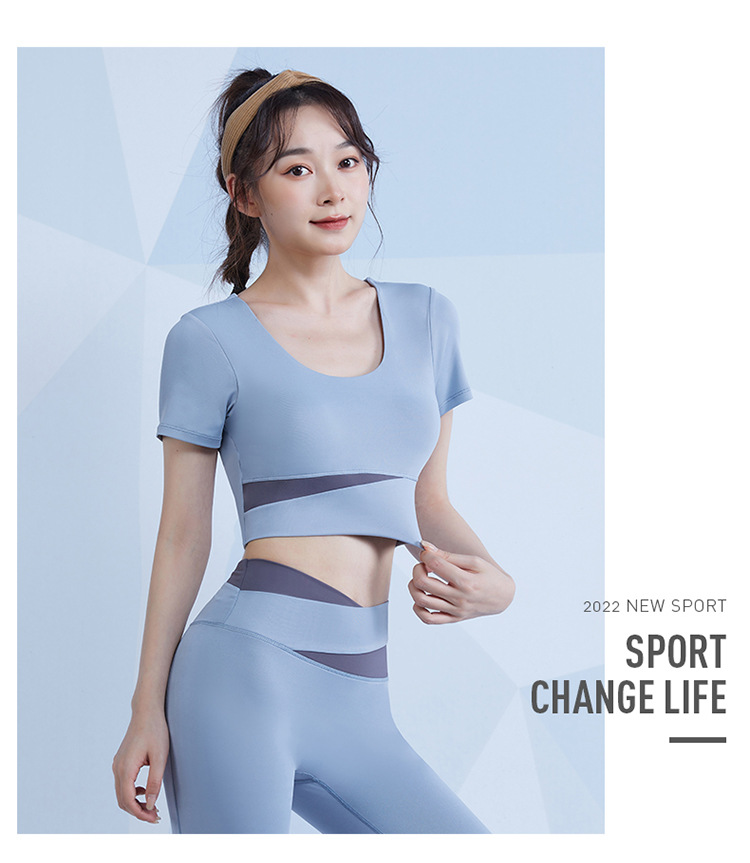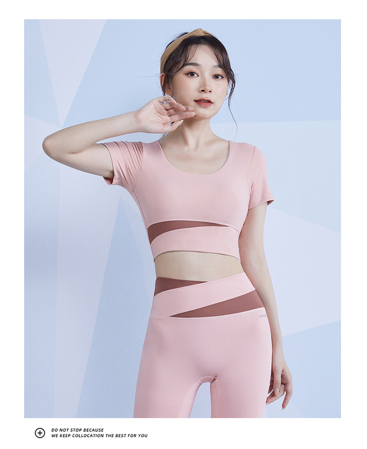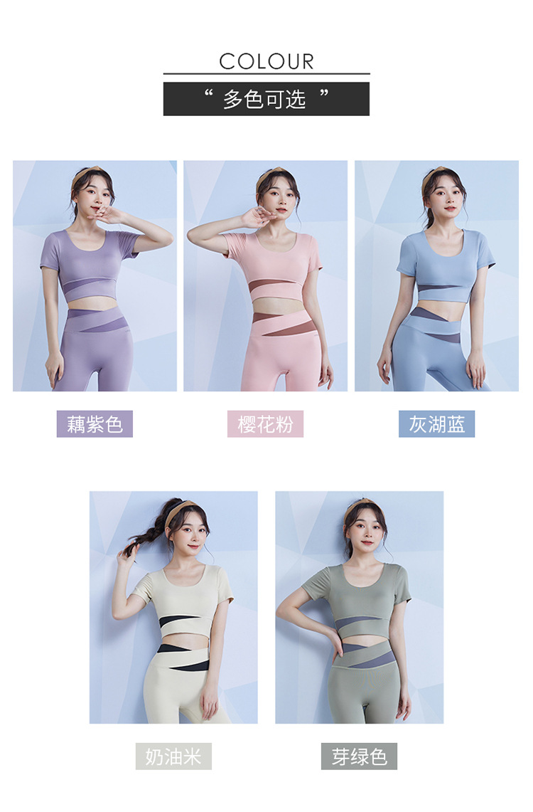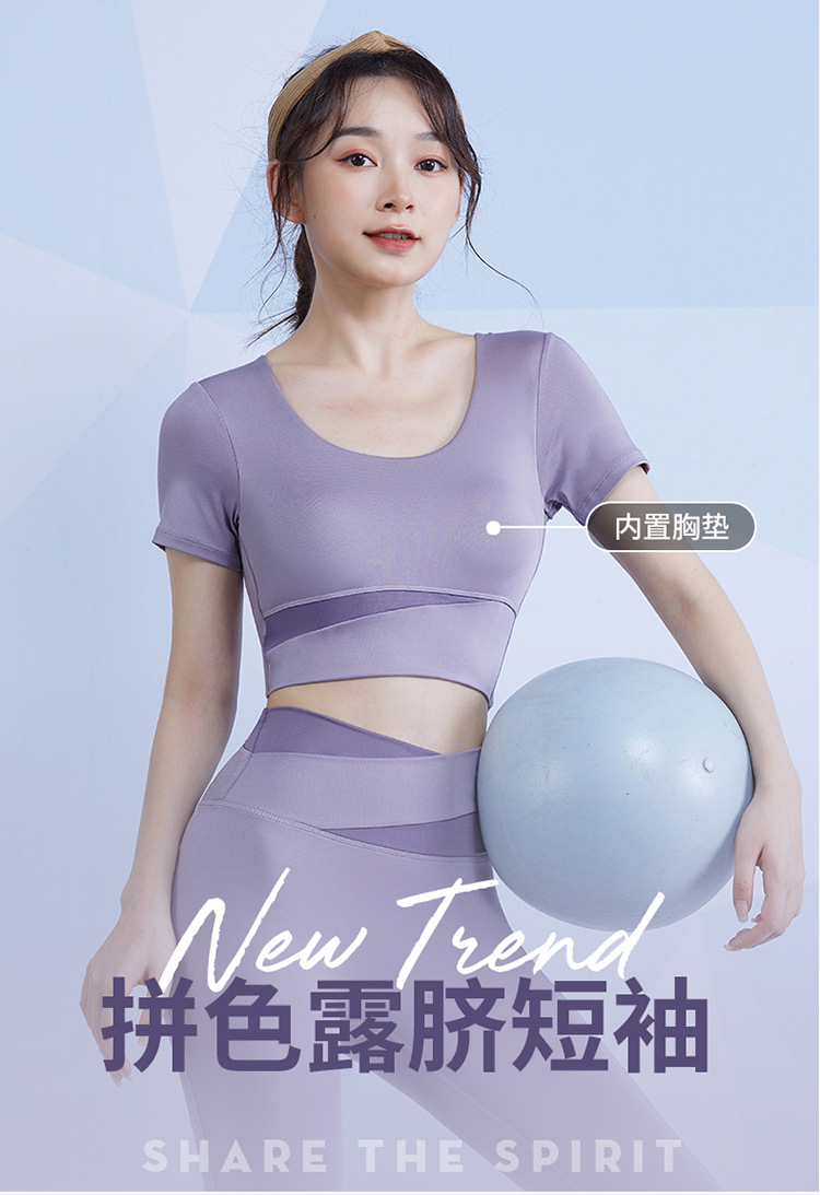 范斯蒂克 女款瑜伽服跑步健身拼接短袖 带胸垫 灰湖蓝/樱花粉/藕紫色/奶油米/芽绿色 FBF2217701-05 拼色运动露脐短袖 自然拉高腰线 撞色设计造型更亮眼 穿上舒适不紧勒 透气涤氨运动面料 柔滑亲肤 舒爽不闷汗 五个色系可选 穿出自我个性风 |