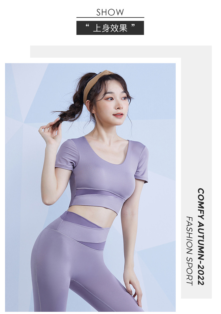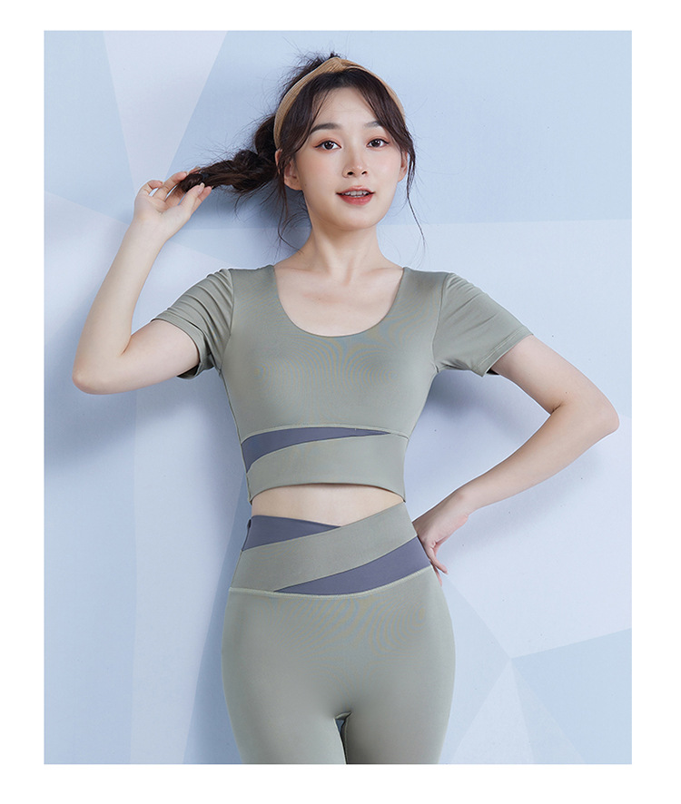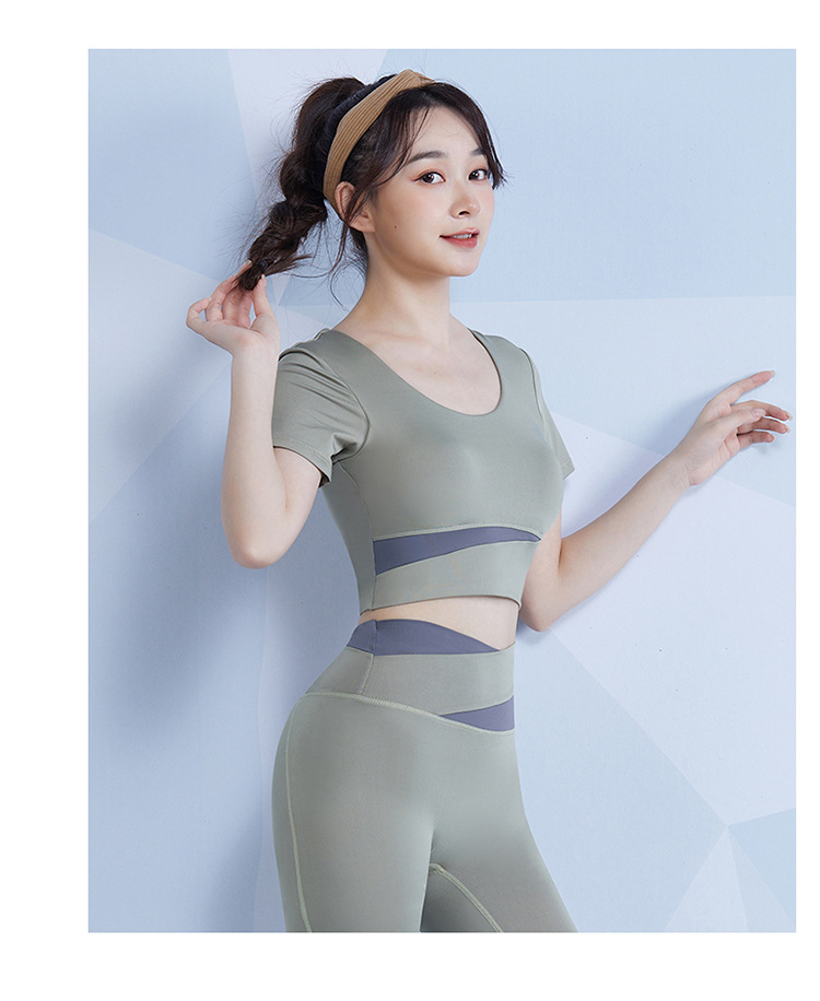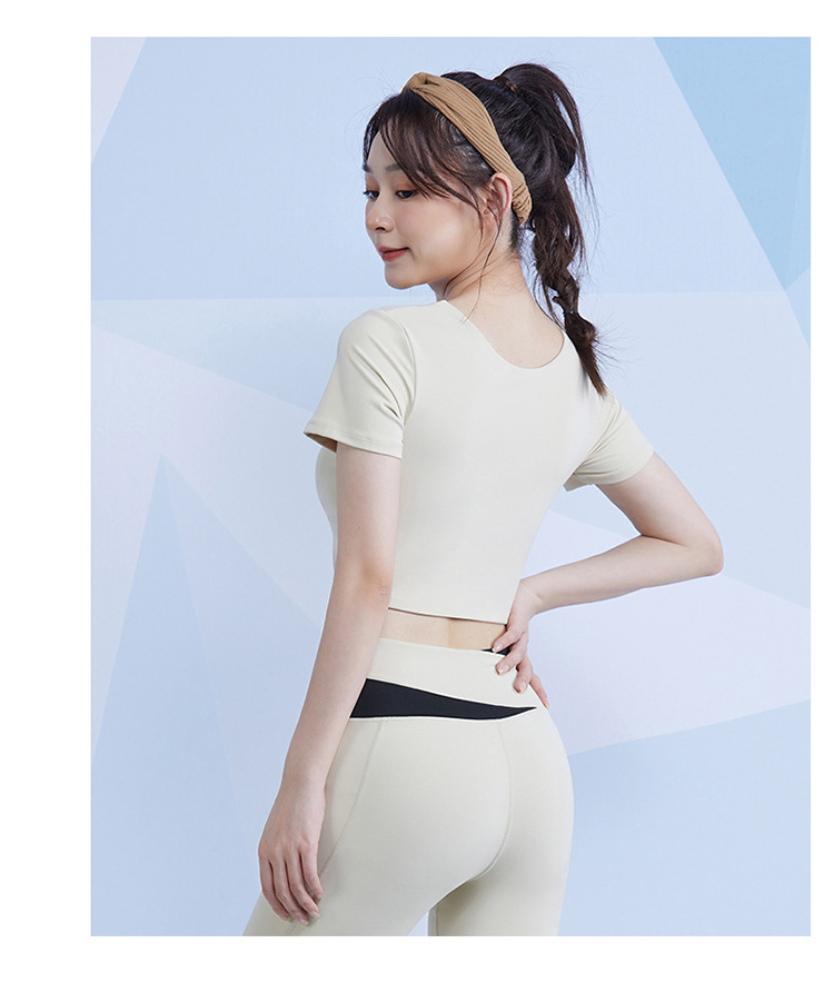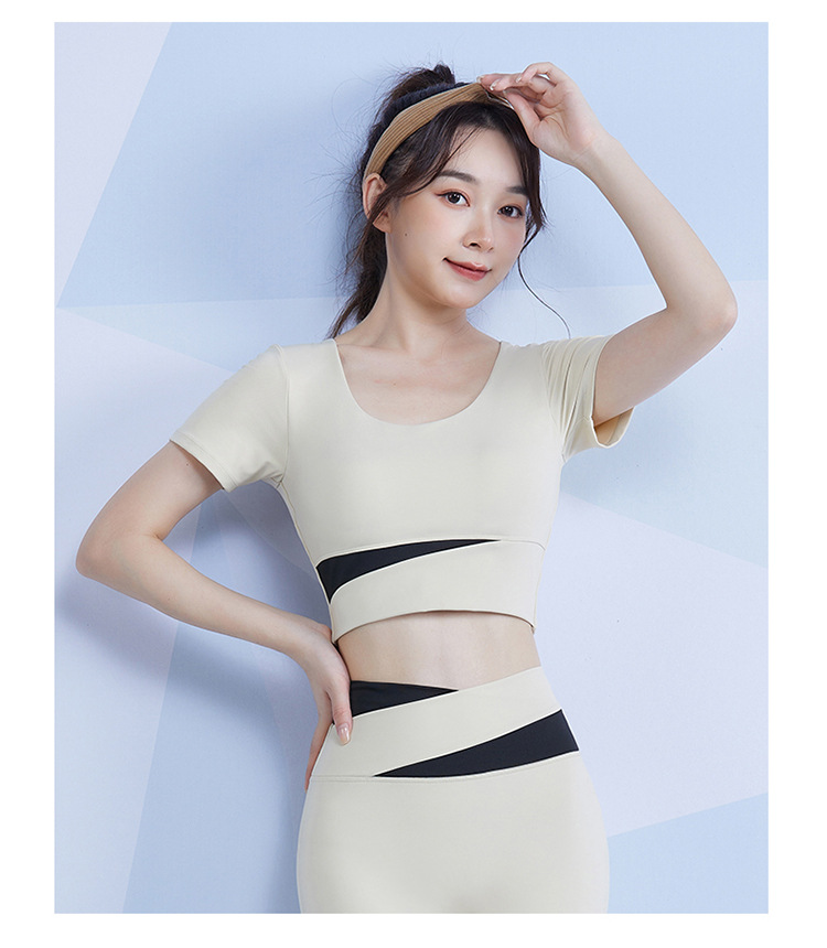 范斯蒂克 女款瑜伽服跑步健身拼接短袖 带胸垫 灰湖蓝/樱花粉/藕紫色/奶油米/芽绿色 FBF2217701-05 拼色运动露脐短袖 自然拉高腰线 撞色设计造型更亮眼 穿上舒适不紧勒 透气涤氨运动面料 柔滑亲肤 舒爽不闷汗 五个色系可选 穿出自我个性风 |