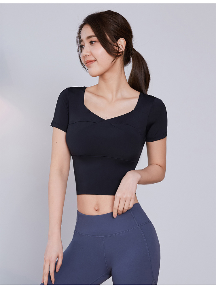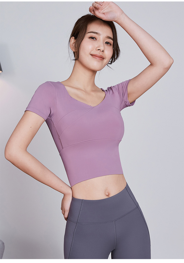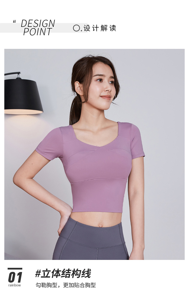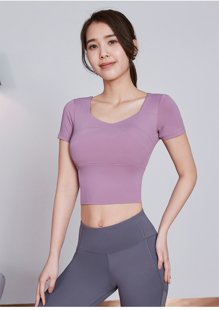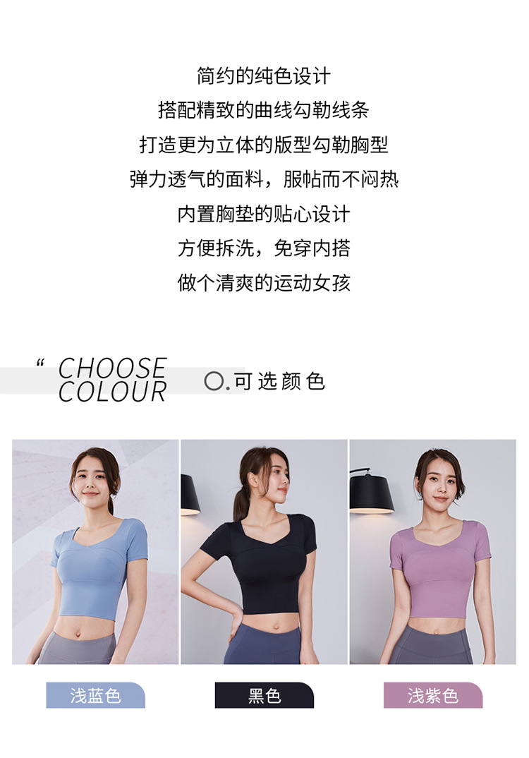 范斯蒂克 女款瑜伽服跑步健身拼接短袖 带胸垫 黑色/浅紫/浅蓝 FBF201353-55
