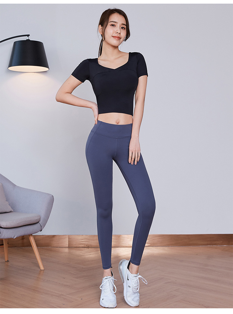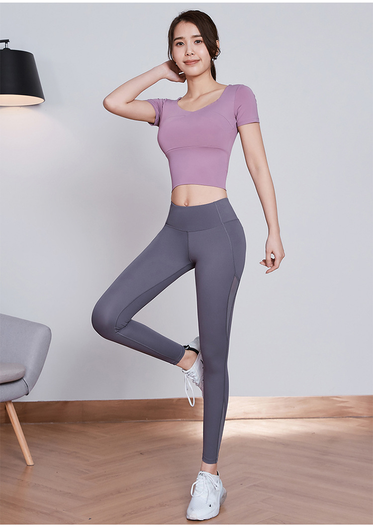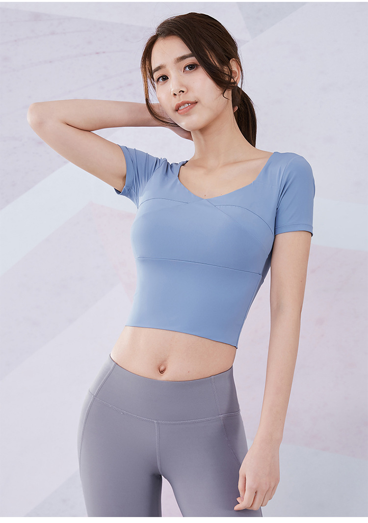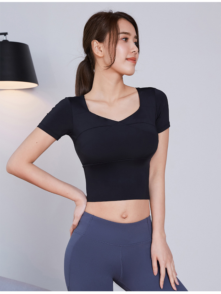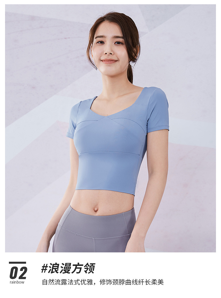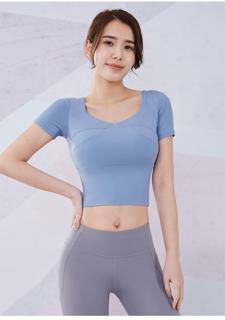 范斯蒂克 女款瑜伽服跑步健身拼接短袖 带胸垫 黑色/浅紫/浅蓝 FBF201353-55