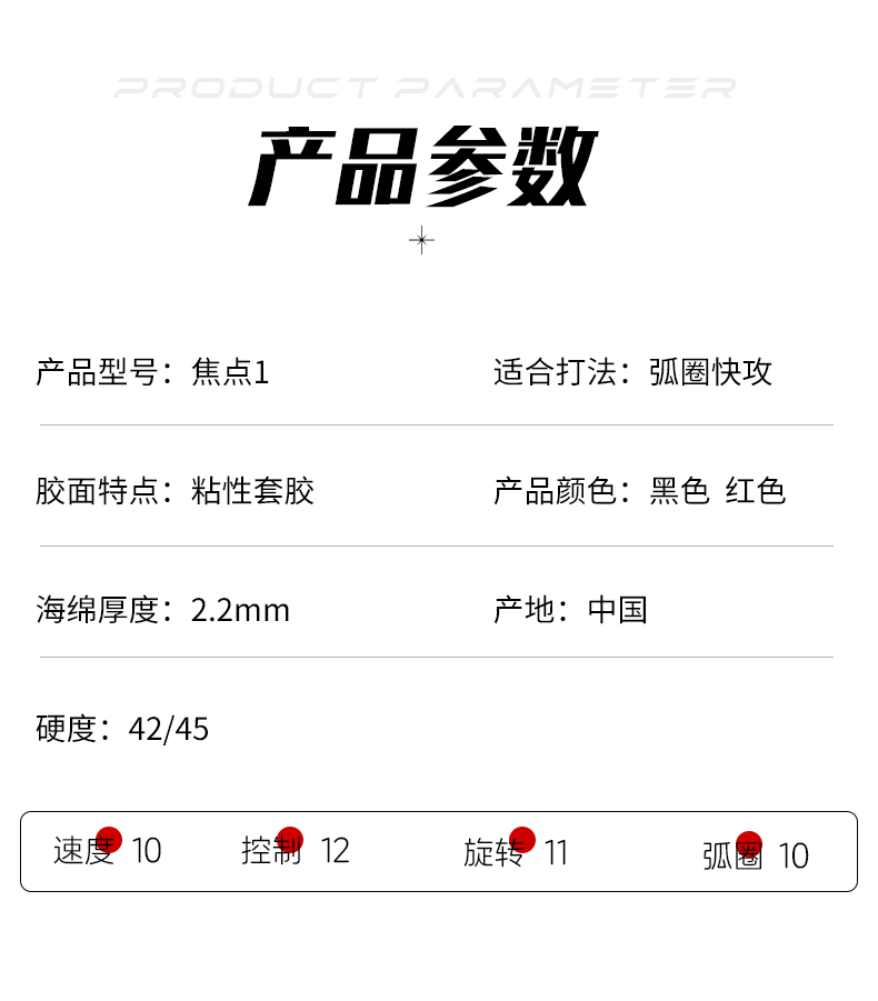 焦点2:速度快,弹性足,适合正手快弧打法。