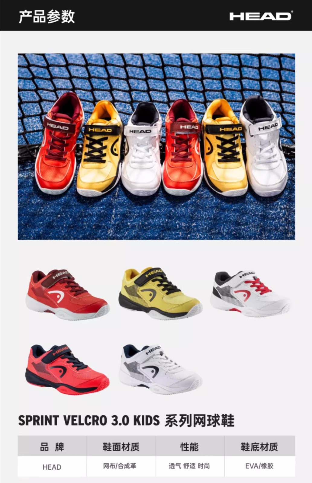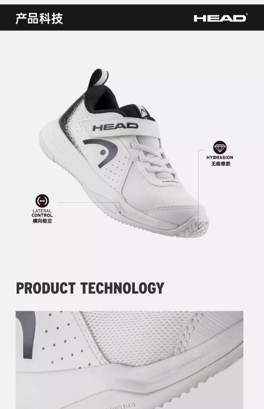 Head海德网球鞋 Sprint Velcro系列专业运动儿童网球鞋防滑减震耐磨透气 275535 白黑 本品参加11.11同价抢先购满129减20 299减50 499减80 999减150 1299减200元大促!
