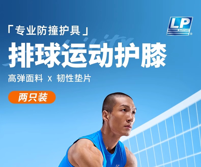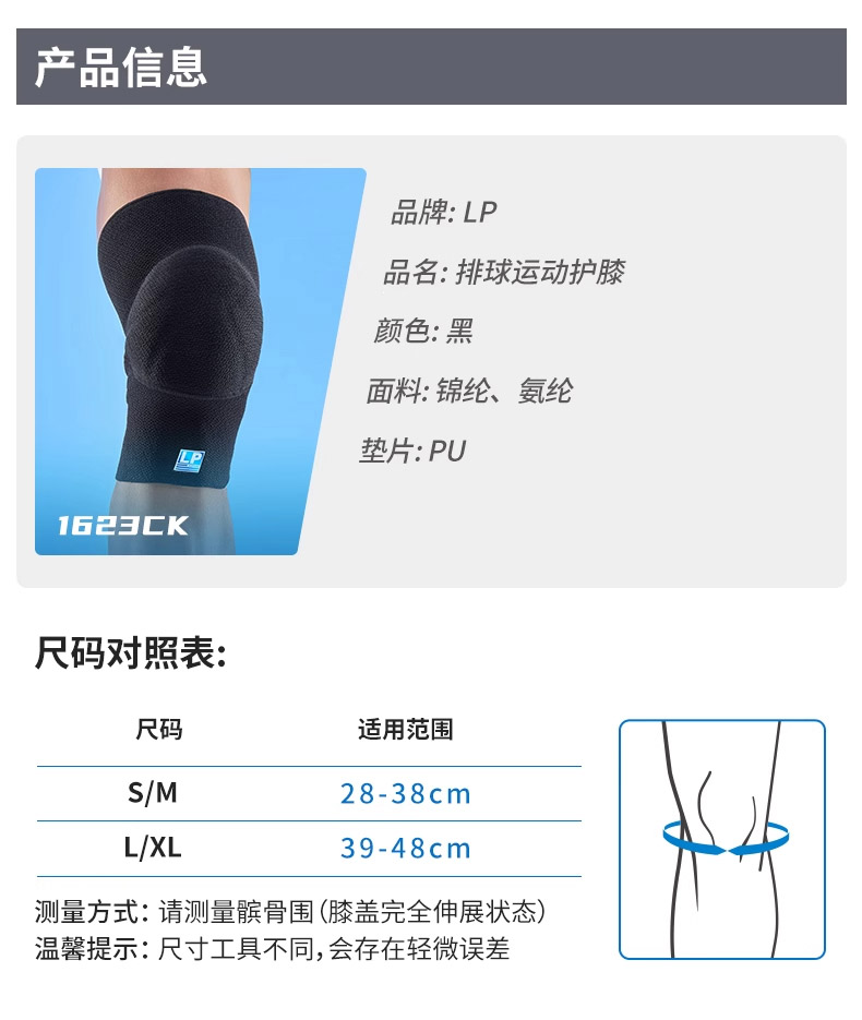 LP欧比 排球运动护膝防摔防撞膝盖保护套专业运动健身(两只装) 1623CK 黑色 排球专用、防撞防摔、立体包裹