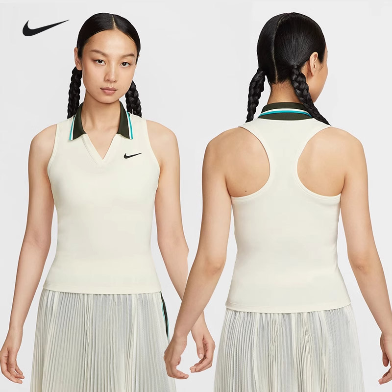 Nike耐克网球服 25年法网郑钦文同款比赛翻领polo运动无袖背心上衣 FZ6753-110 象牙色