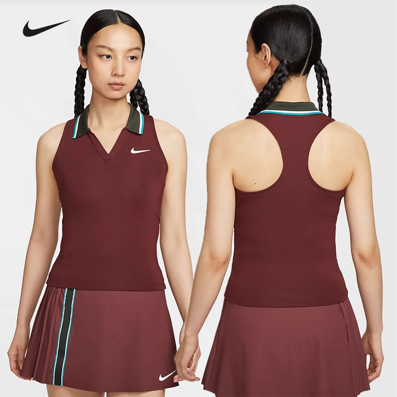 Nike耐克网球服 25年法网郑钦文同款比赛翻领polo运动无袖背心上衣 FZ6753-619 暗红色