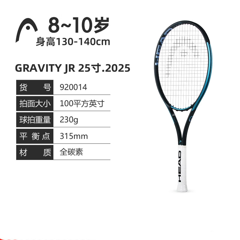 HEAD海德网球拍 儿童网球拍青少年网球拍全碳素儿童拍专业拍一体拍Gravity 25寸/26寸 920014/920015