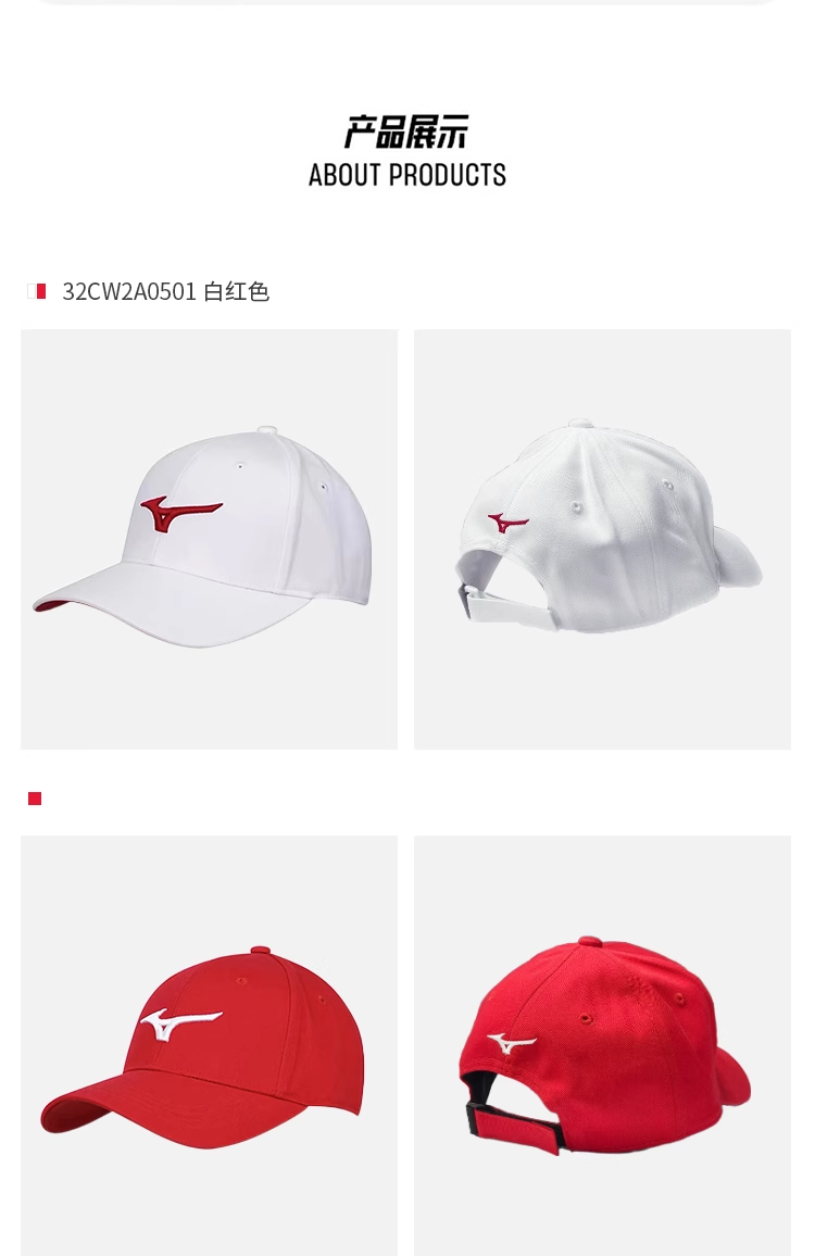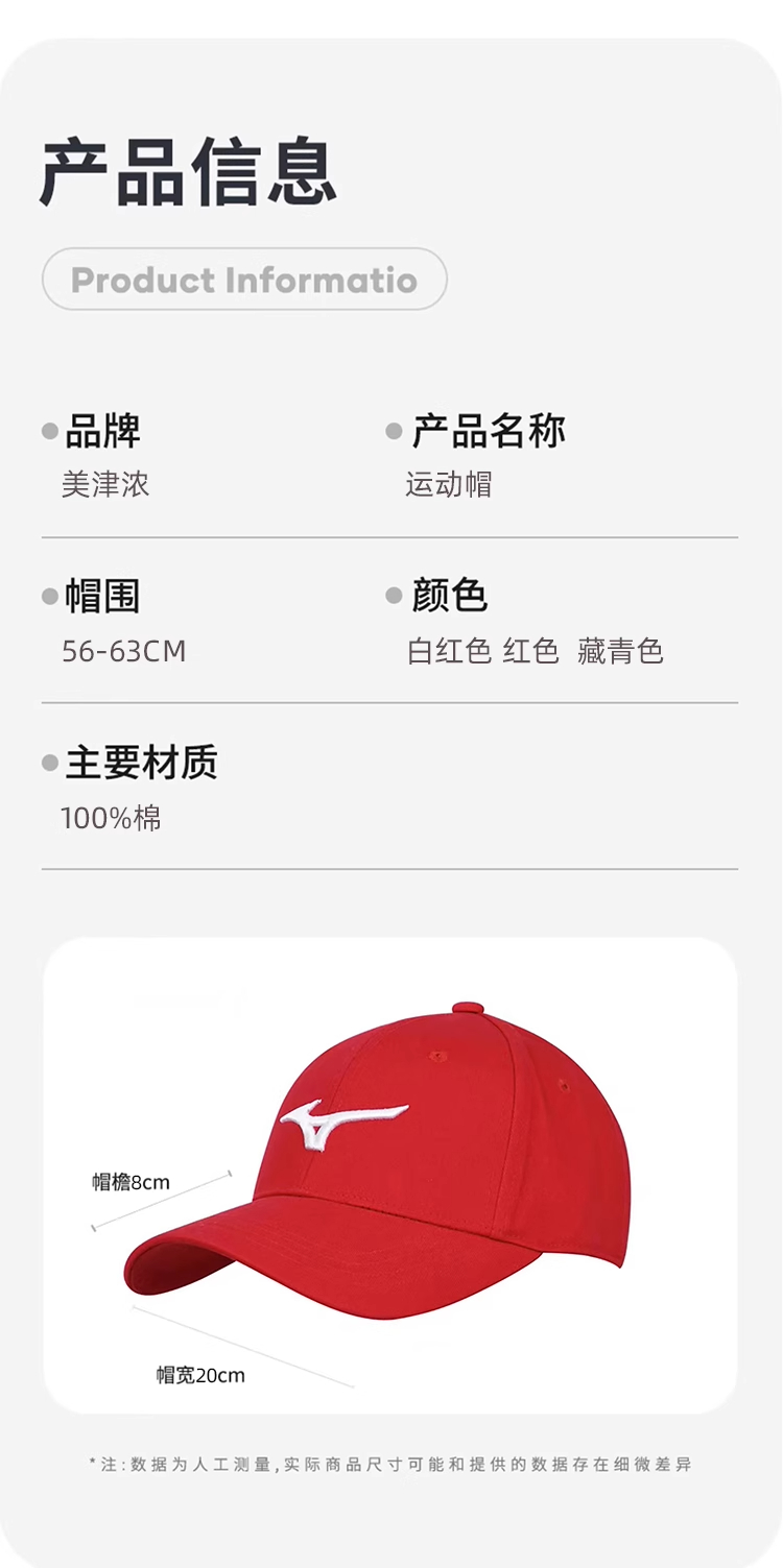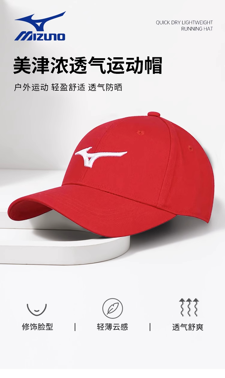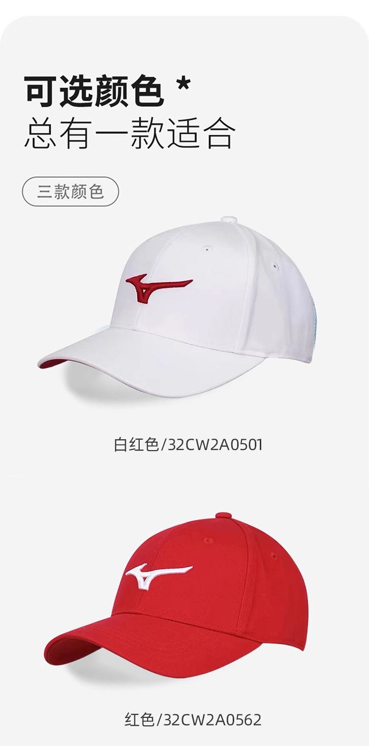 Mizuno美津浓网球帽 男女款均码专业运动帽夏季防晒鸭舌帽棒球帽 32CW2A0501 白色/红色/藏青(三色可选) 户外运动 轻盈舒适 透气防晒!