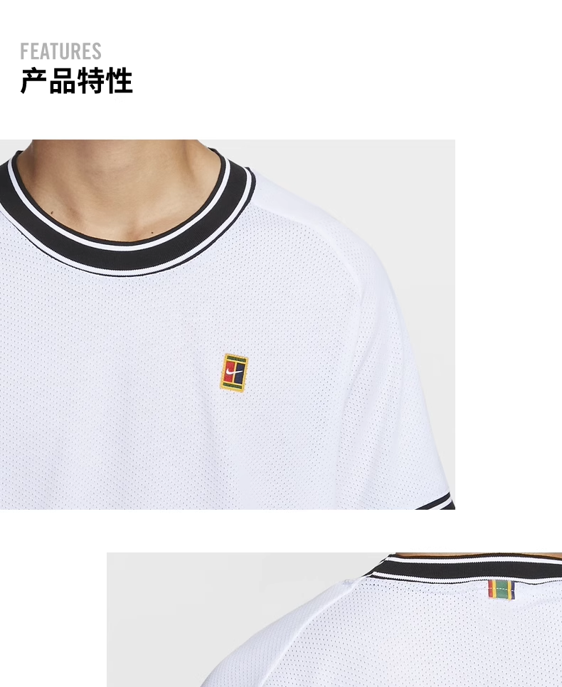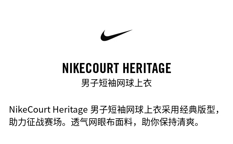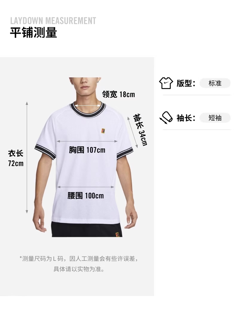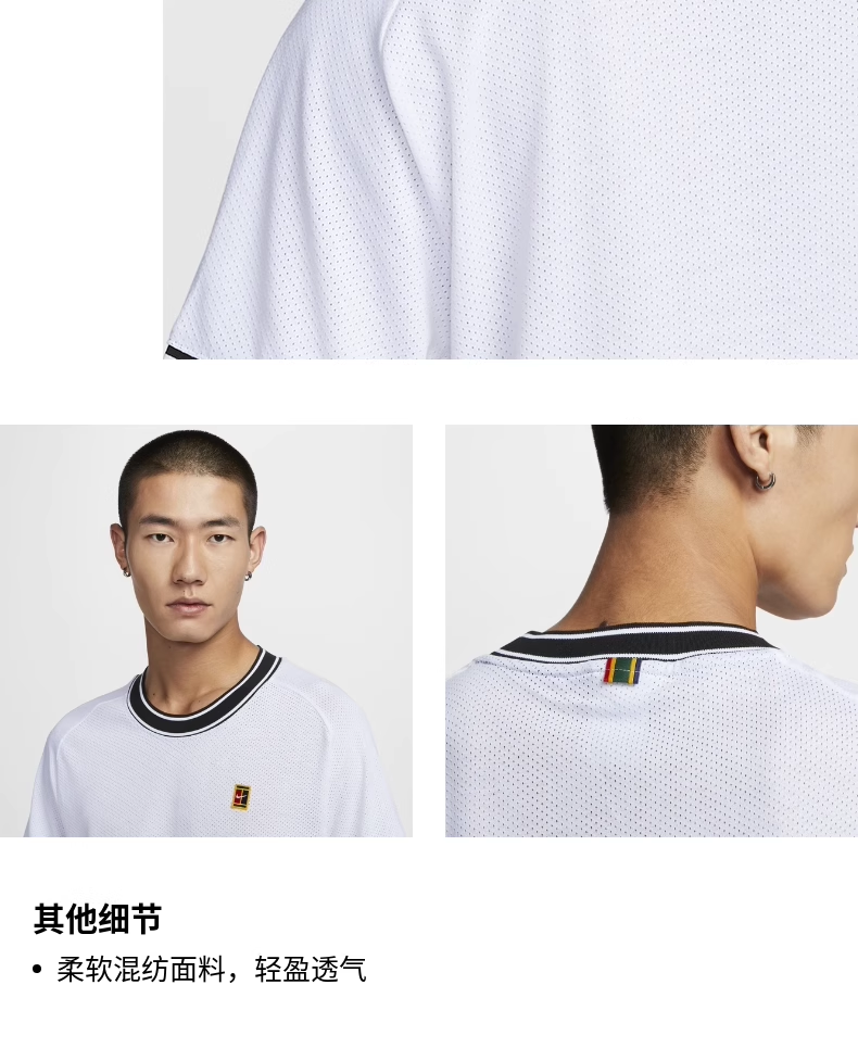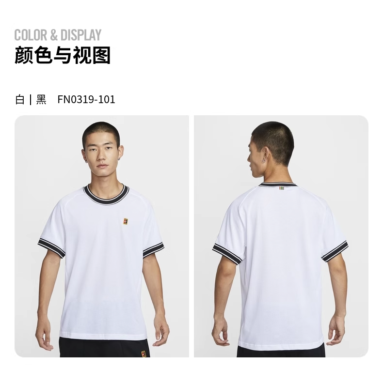 Nike耐克网球服 男子2025温网新款快干透气运动T恤短袖上衣 FN0319 白/黑 温网系列,经典版型、轻盈透气