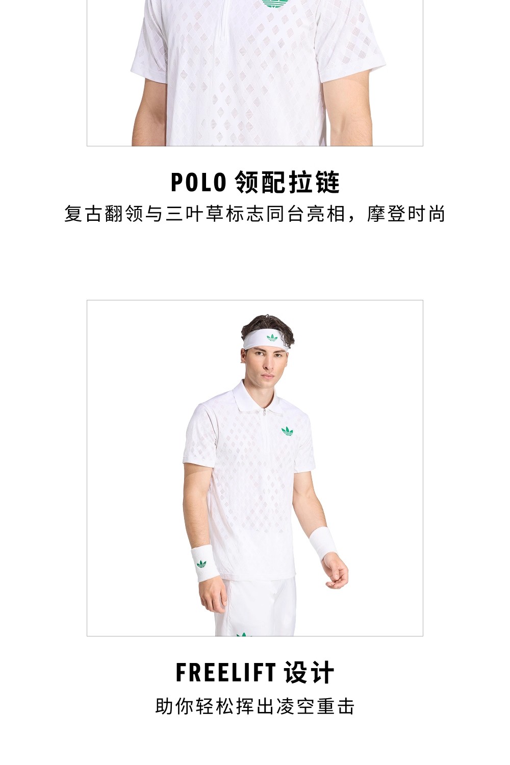 Adidas阿迪达斯网球服 三叶草网球服25西西帕斯温网同款POLO衫短袖 JL9675 白/绿 西西帕斯温网同款短袖、三叶草系列、质感舒适!
