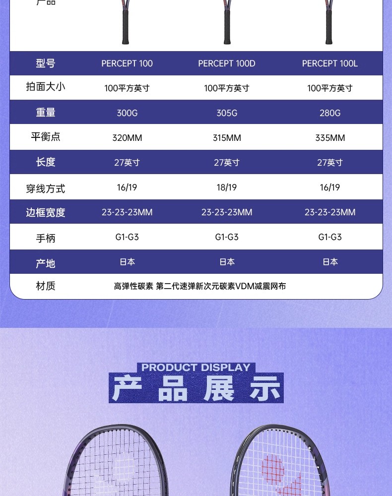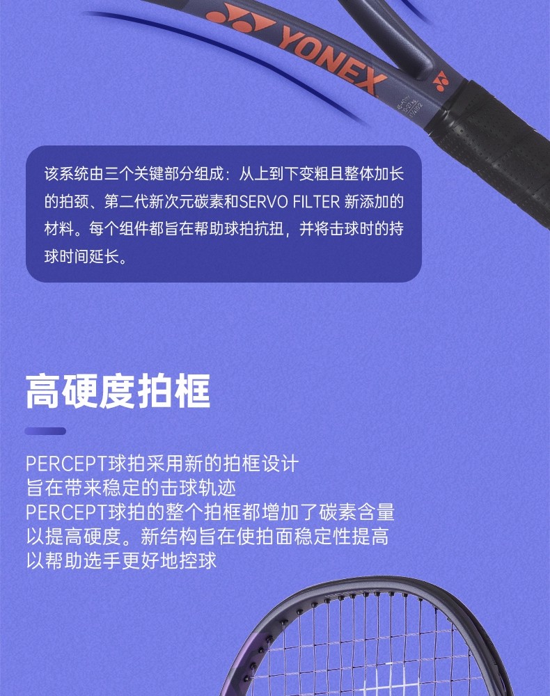 PERCEPT球拍的整个拍框都增加了碳素含量以提高硬度。