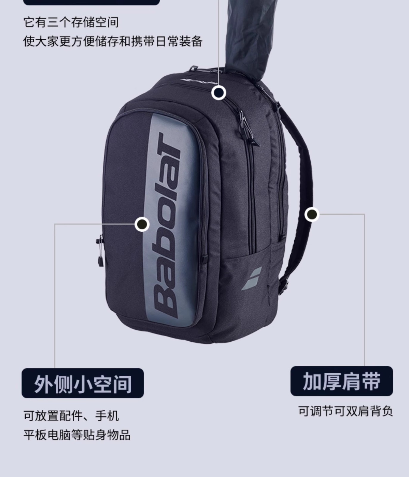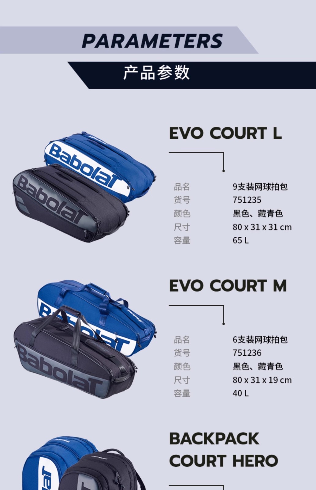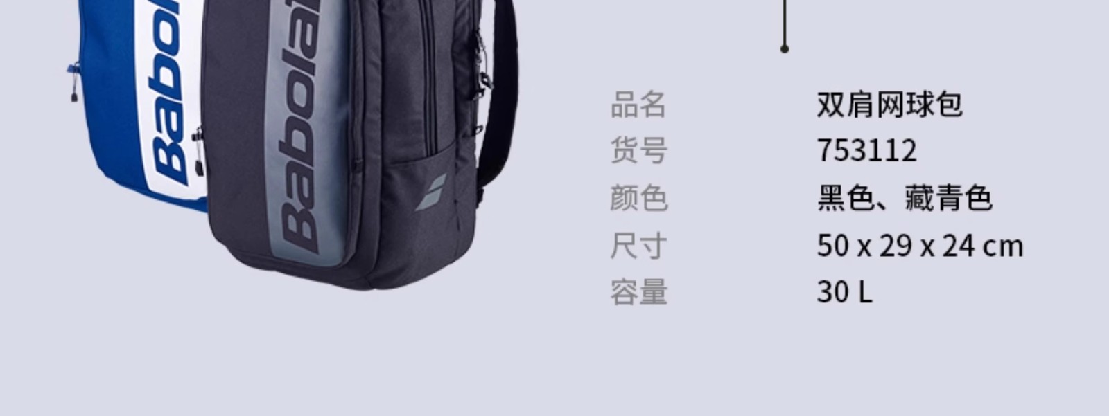 Babolat百保力网球包 EVO系列25新款舒适多功能大容量网球包 双肩包 753112 藏青色 本品参加11.11提前购满129减20 299减50 499减80 999减150 1299减200元大促!