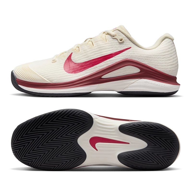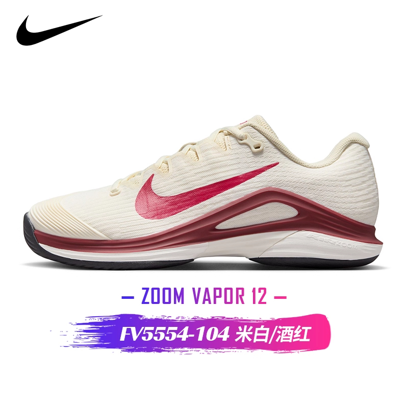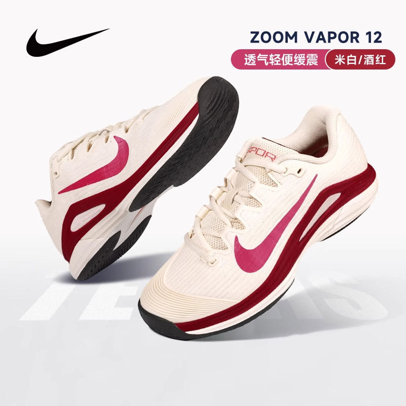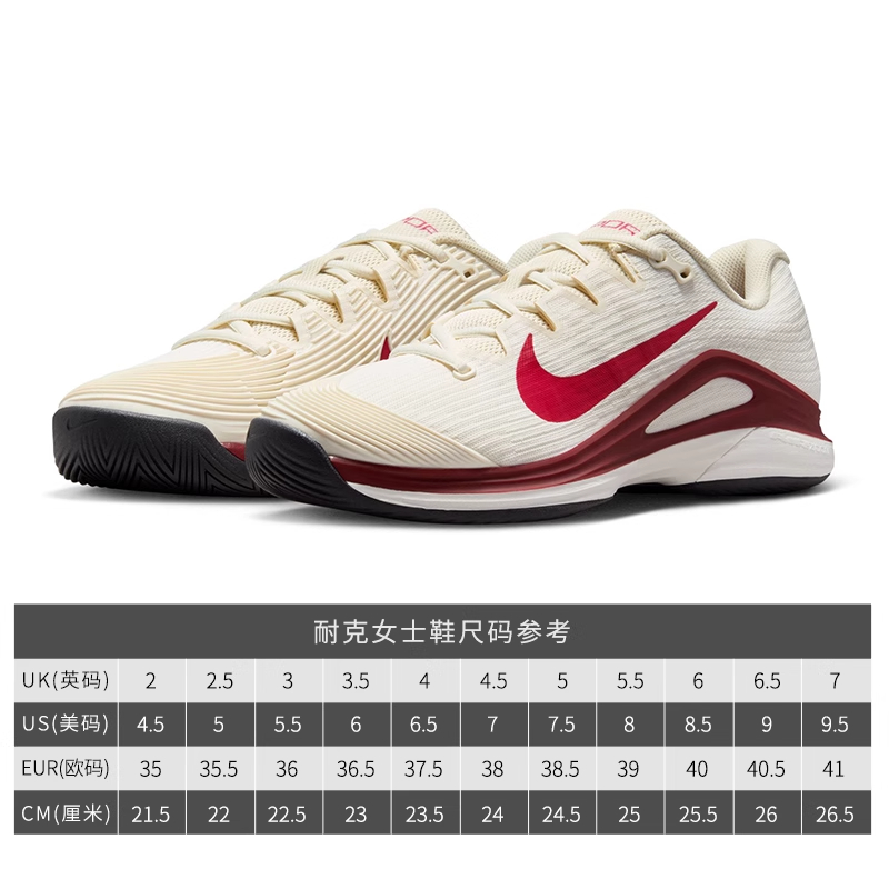 Nike耐克网球鞋 女款Vapor12新款专业网球运动鞋透气缓震运动鞋 FV5554-104 浅米色/红色 缓震回弹、舒适耐磨,弹力十足,轻盈透气