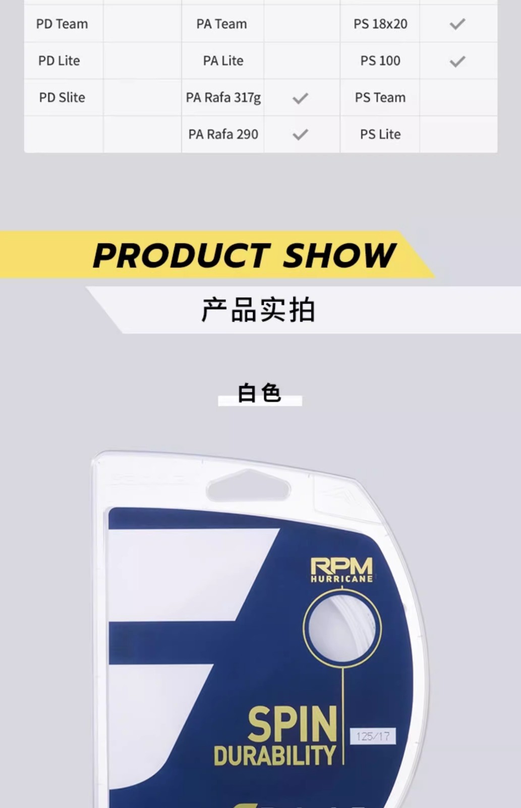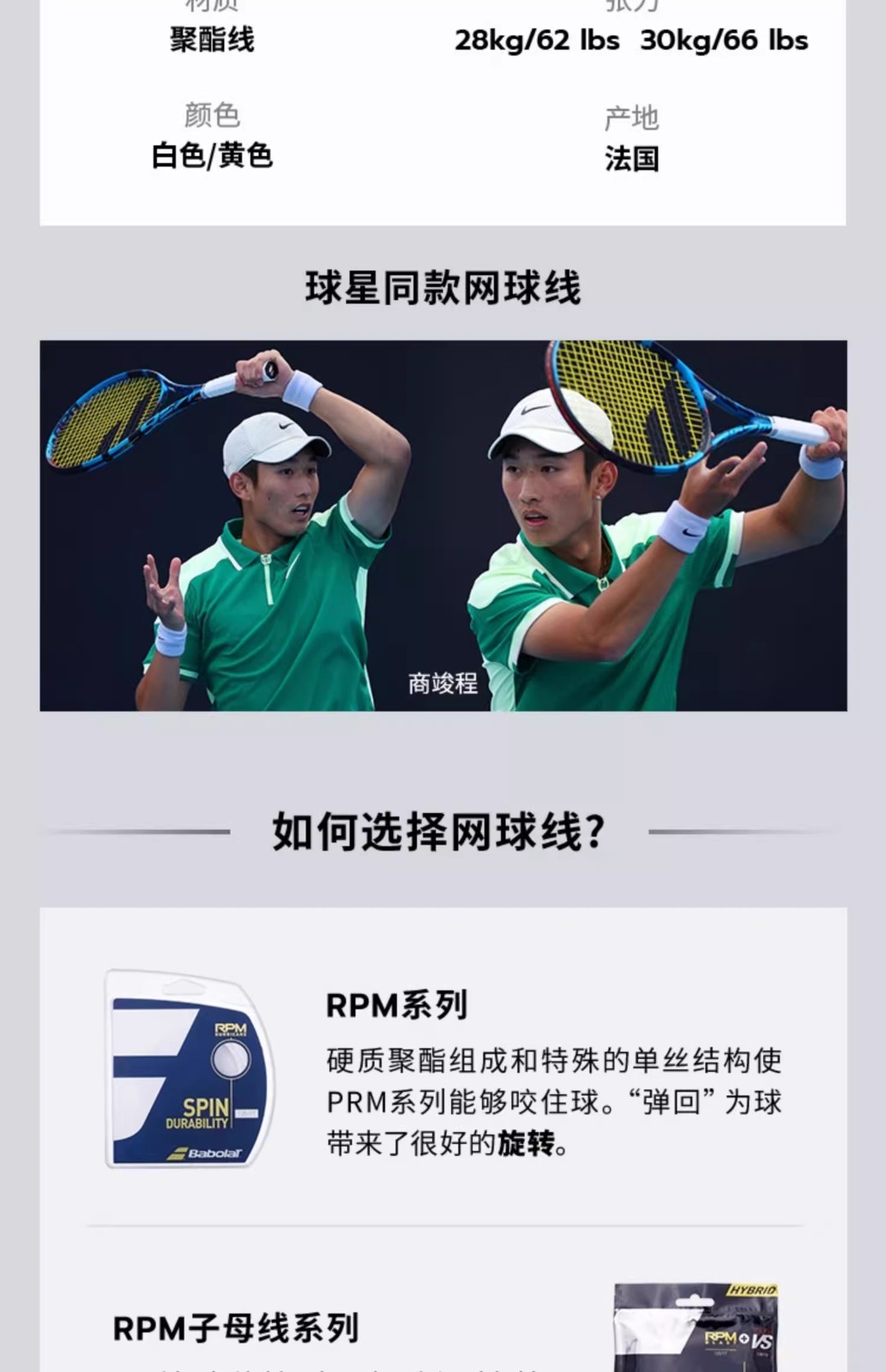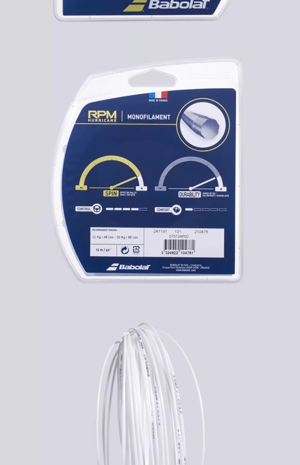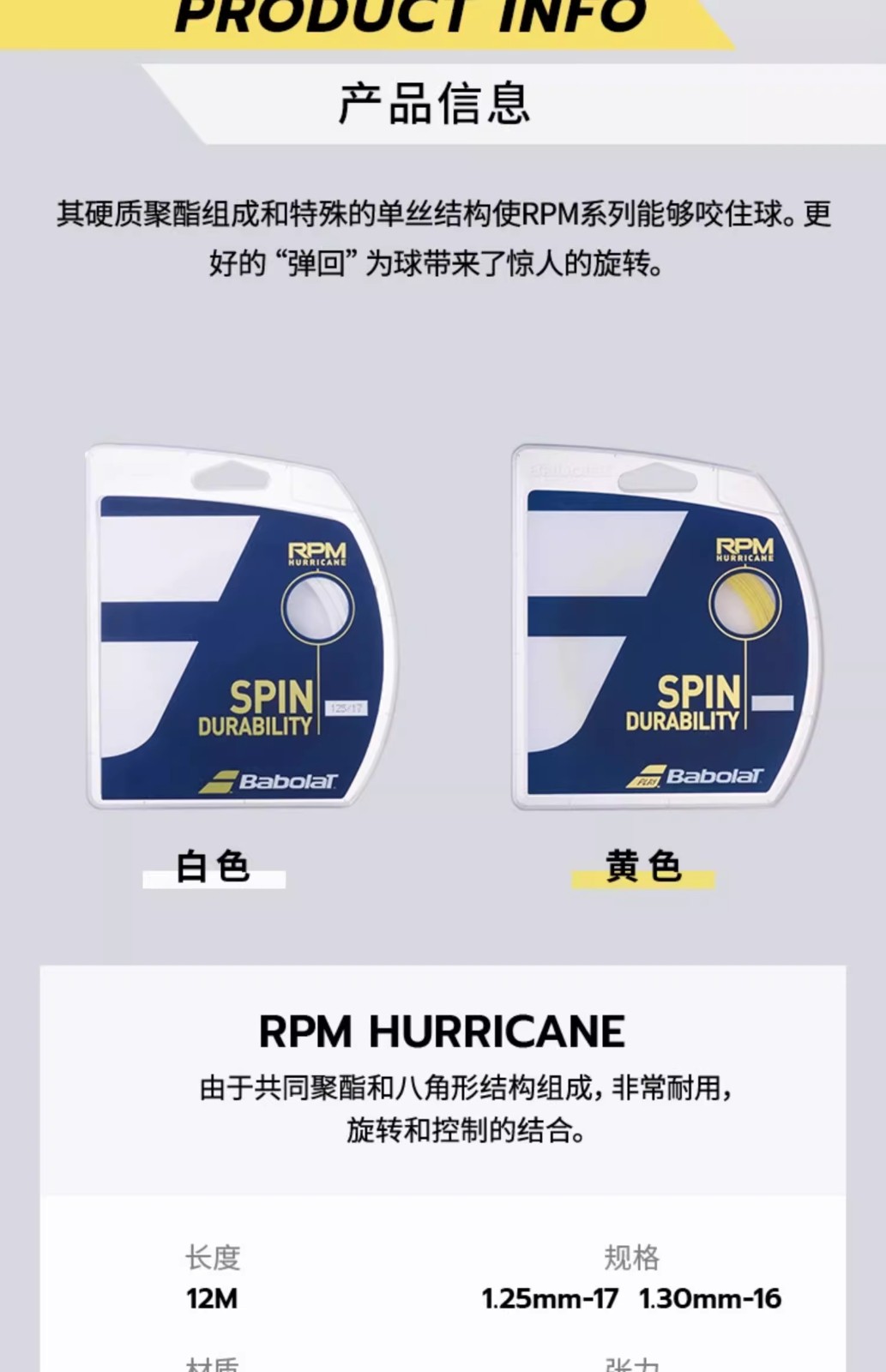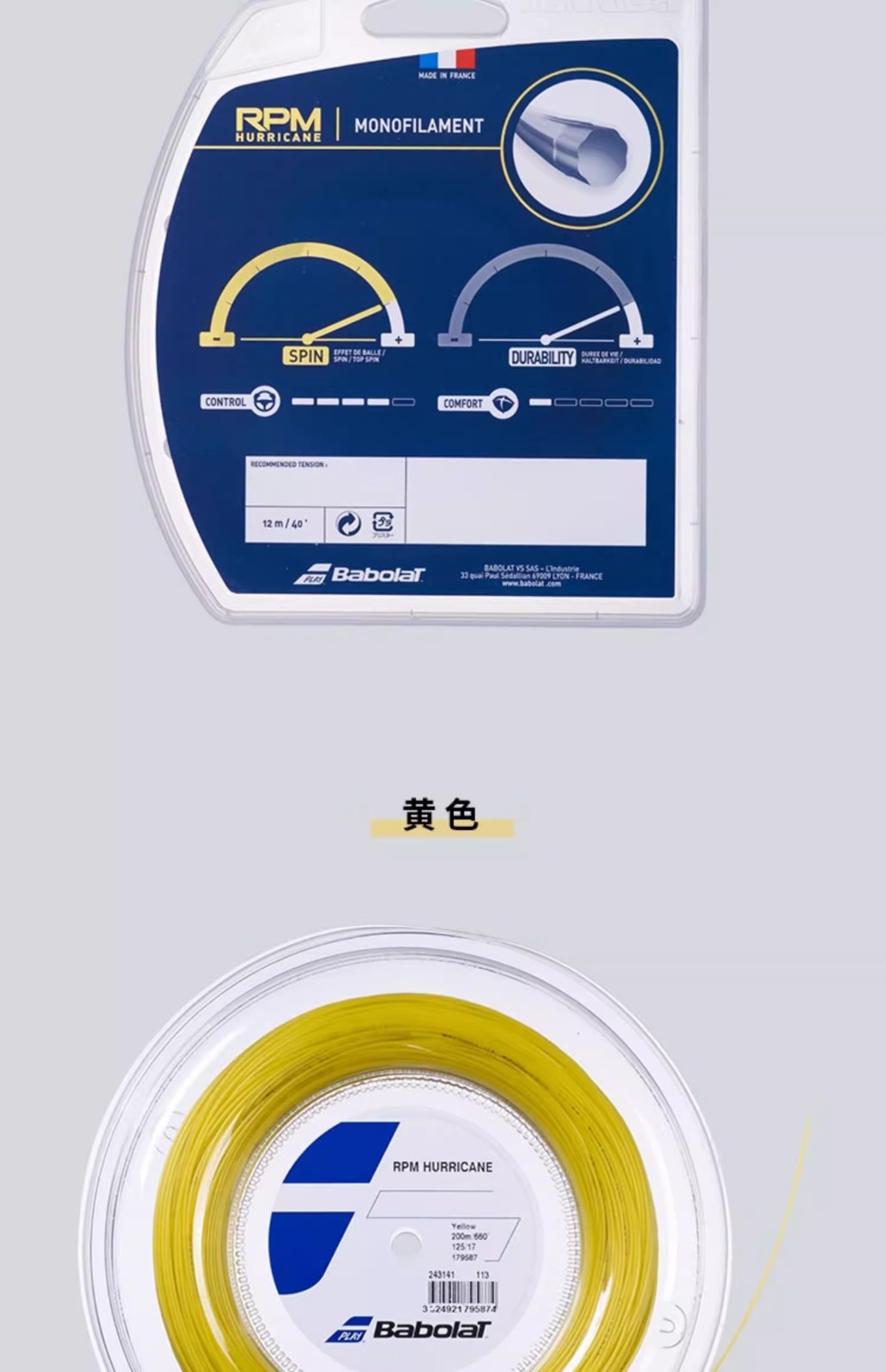 Babolat百保力网球线 RPM HURRICANE耐打训练拍线百宝力聚酯线硬线 241141 17/125 本品参加12.12同价抢先购满129减20 299减50 499减70 699减80 999减150元 1299减180元大促!