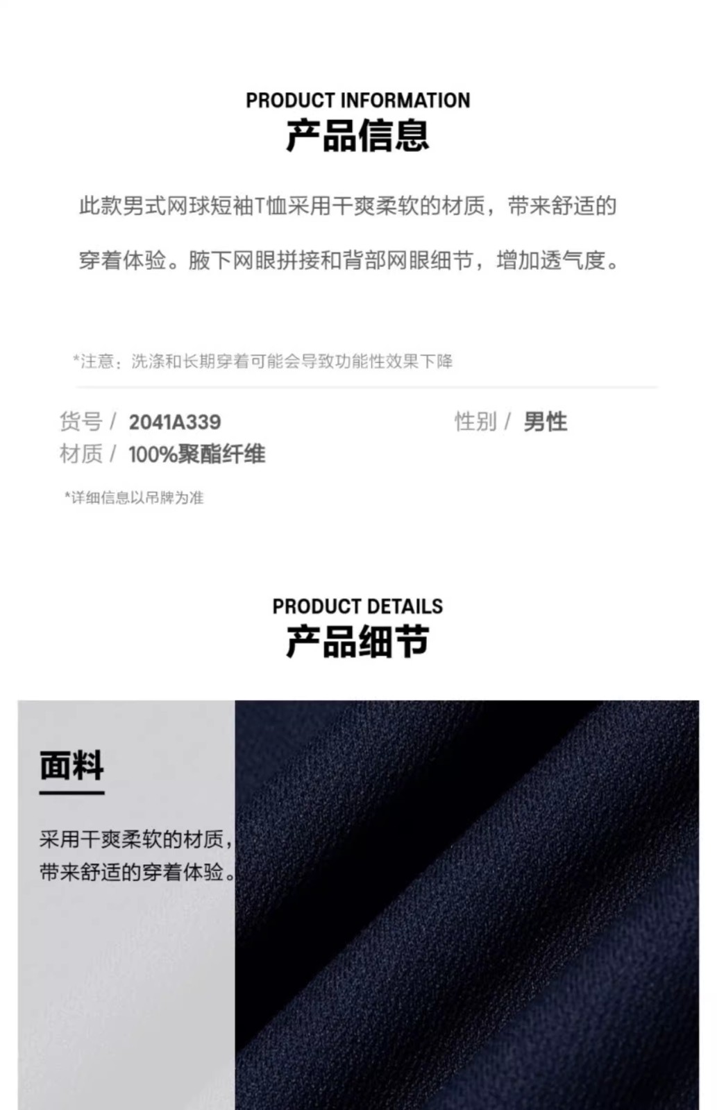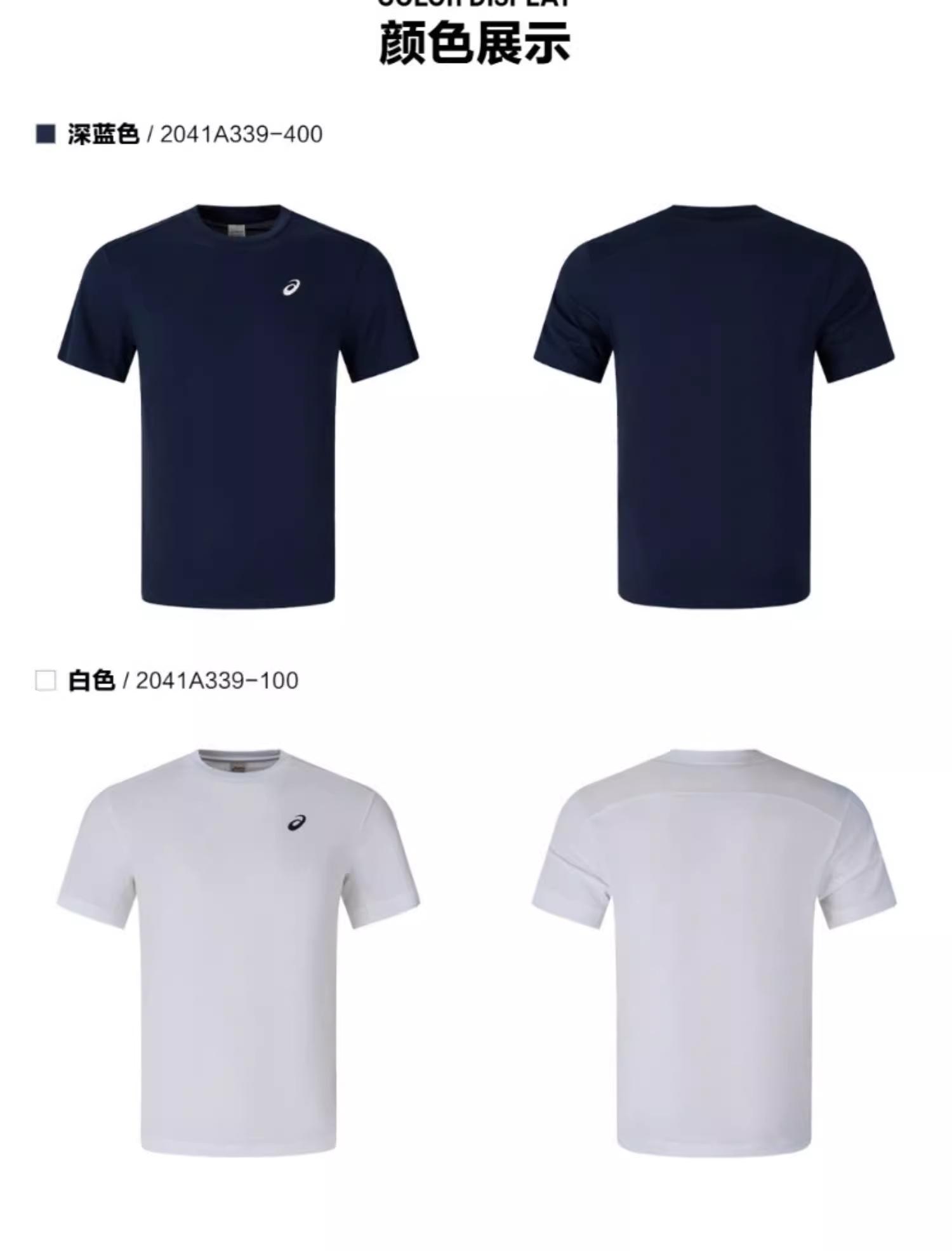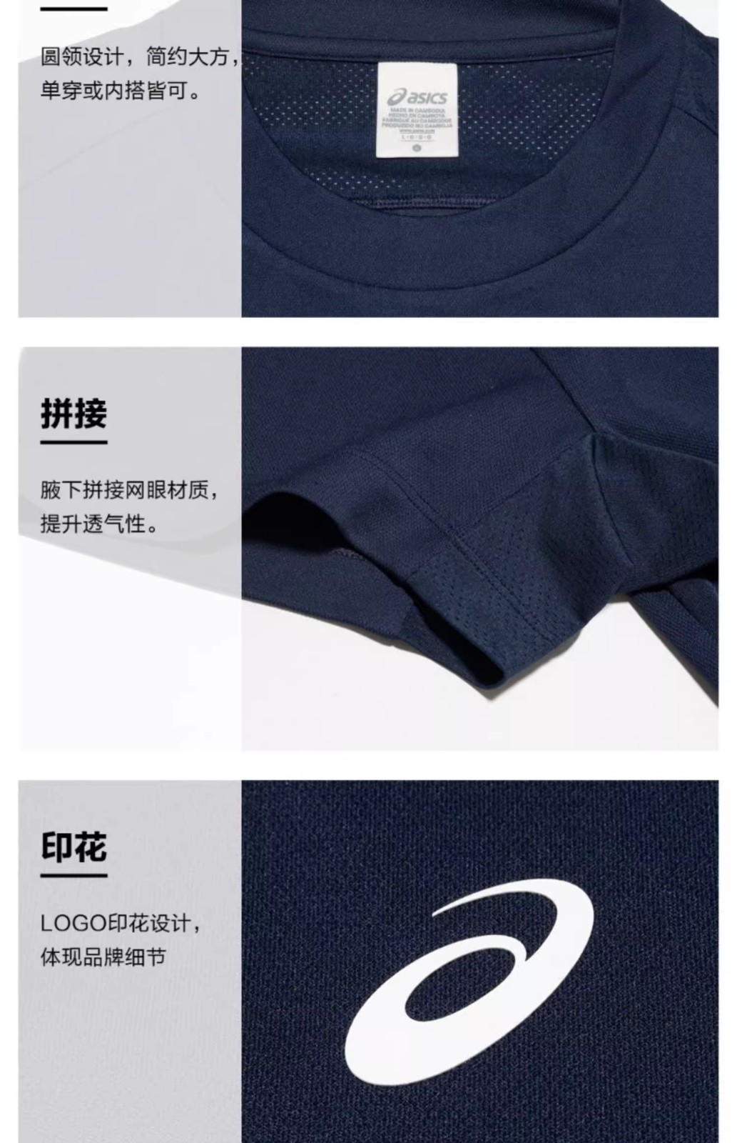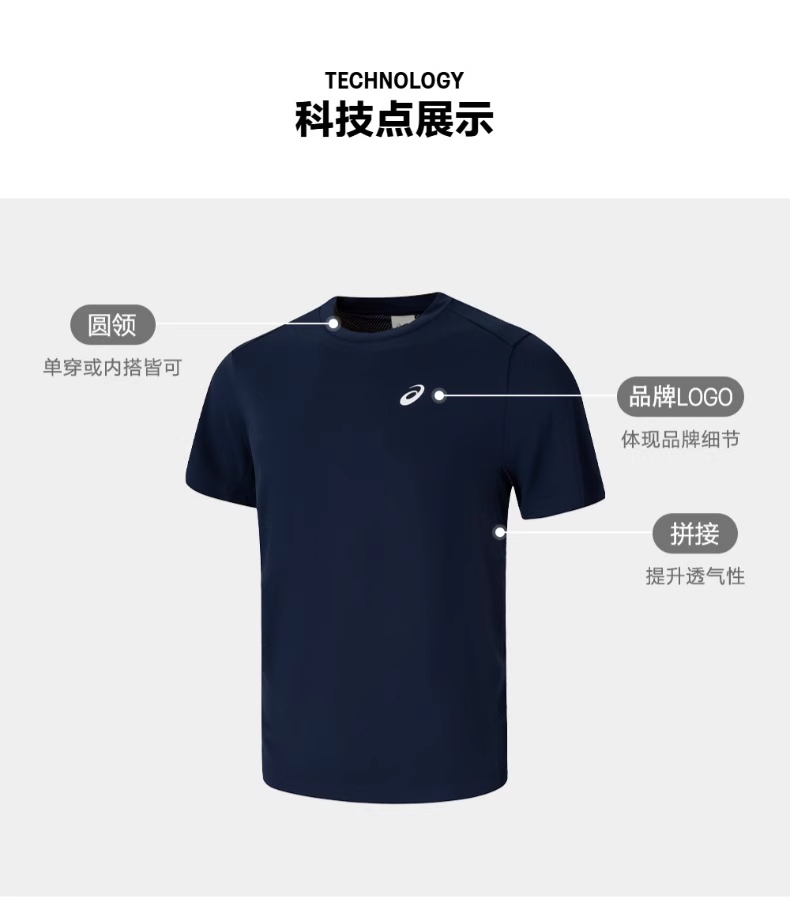 ASICS亚瑟士网球服 男子网球T恤干爽柔软透气时尚舒适圆领运动网球短袖T恤 2041A339-400 深蓝色 舒适透气,圆领设计,简约大方