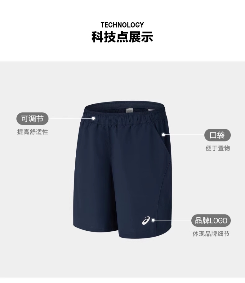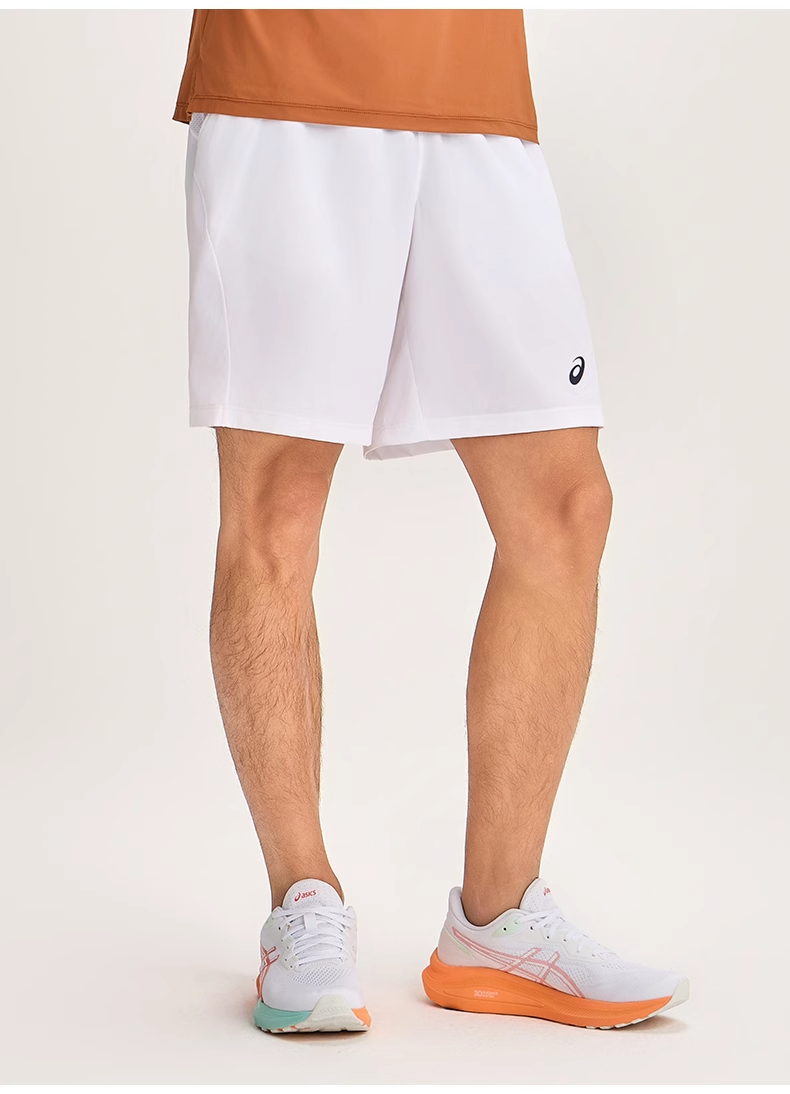 ASICS亚瑟士网球服 男子网球短裤梭织透气轻量弹力网球运动短裤 2041A343-100 白色 弹力梭织面料,舒适透气,两侧口袋