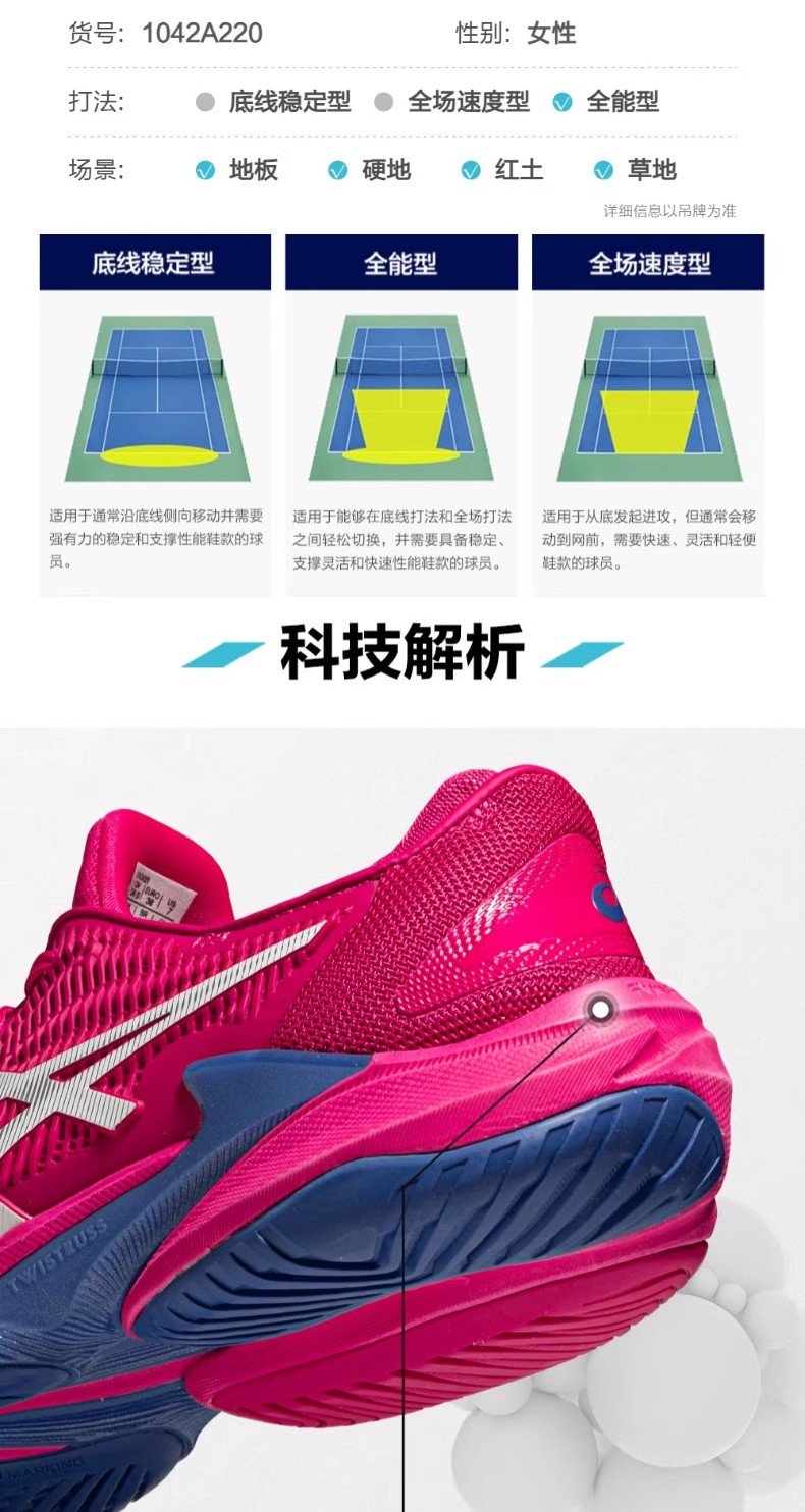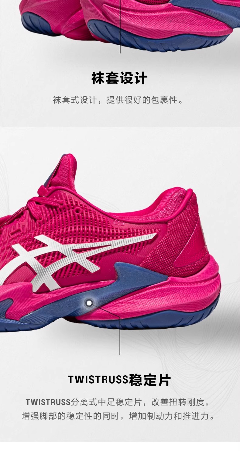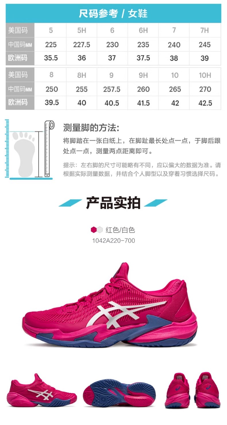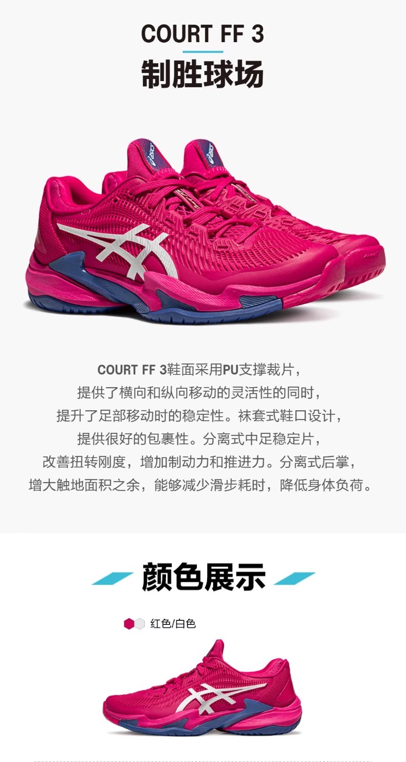ASICS亚瑟士网球鞋 新款COURT FF 3女子全能型网球鞋稳定防滑专业网球鞋 1042A220-700 红/白
