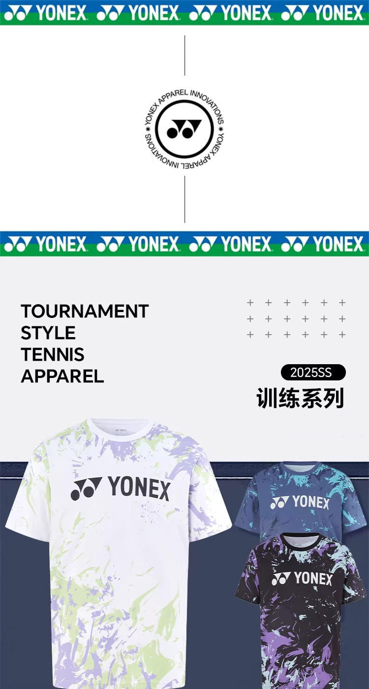 YONEX尤尼克斯 25夏季新款男款上衣圆领短袖网球羽毛球跑步运动健身速干T恤 115145TCR 白色/黑色/靛蓝藏青 速干弹性面料,舒适透气,亲肤贴身!