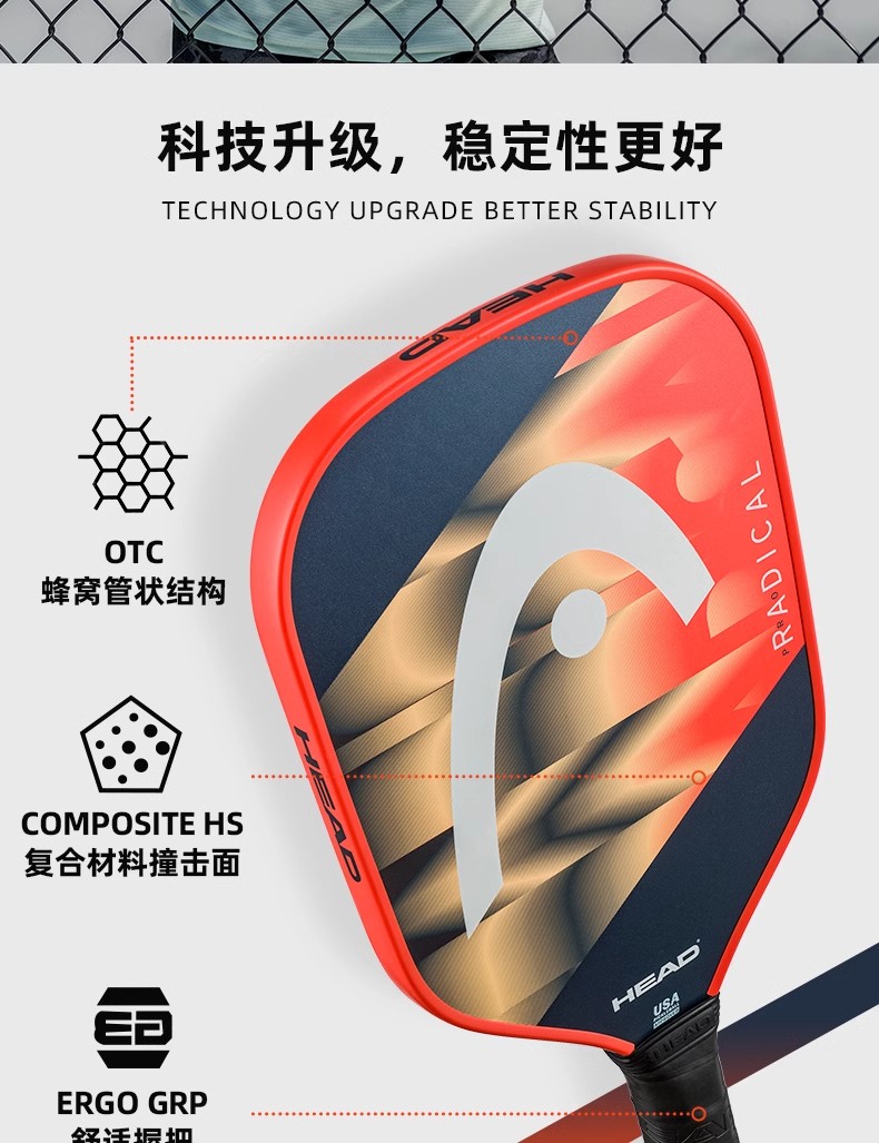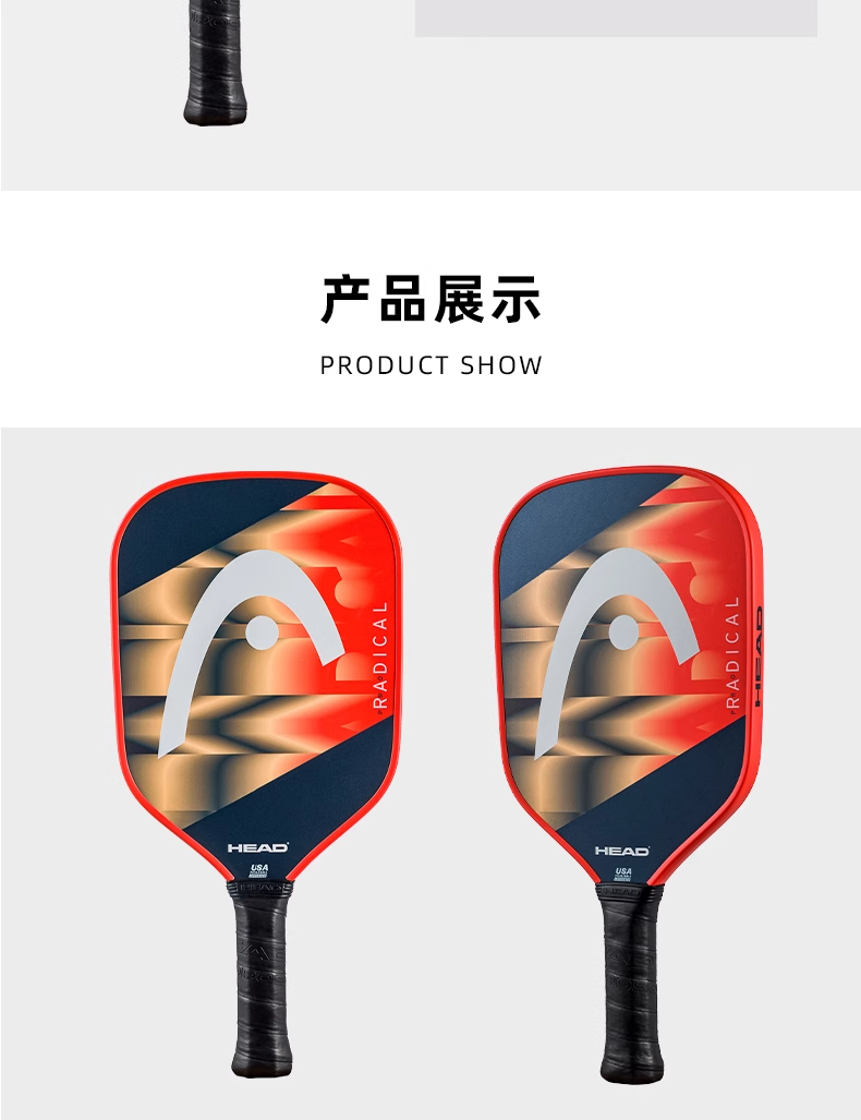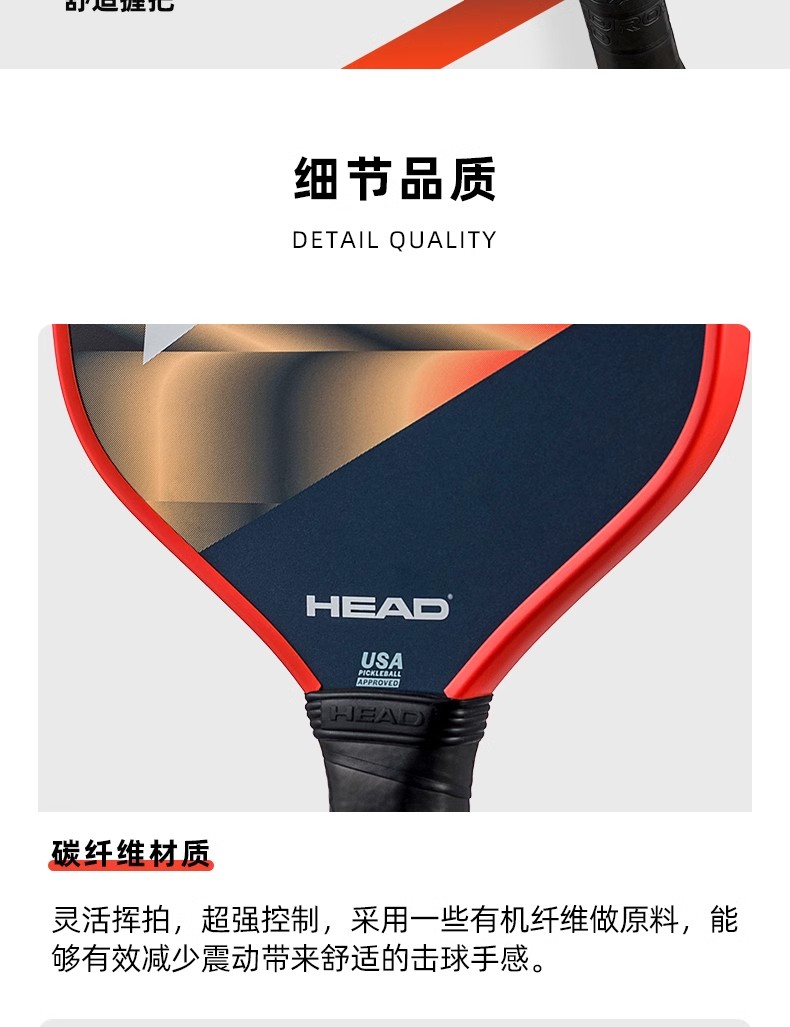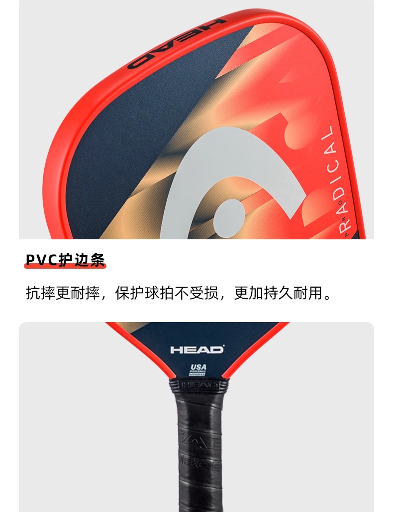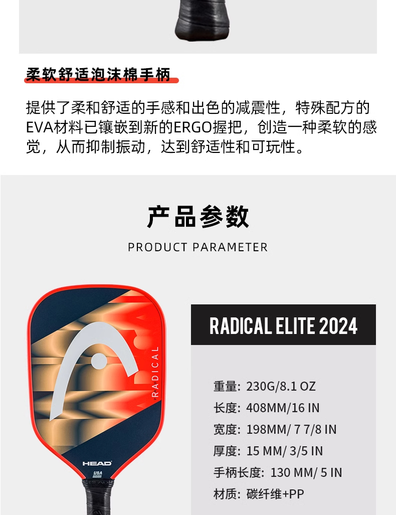 HEAD海德匹克球拍 RADICAL系列PICKLEBALL碳纤维男女匹克球拍ELITE 200024 碳纤维材质,灵活挥拍,超强控制,抗摔耐摔