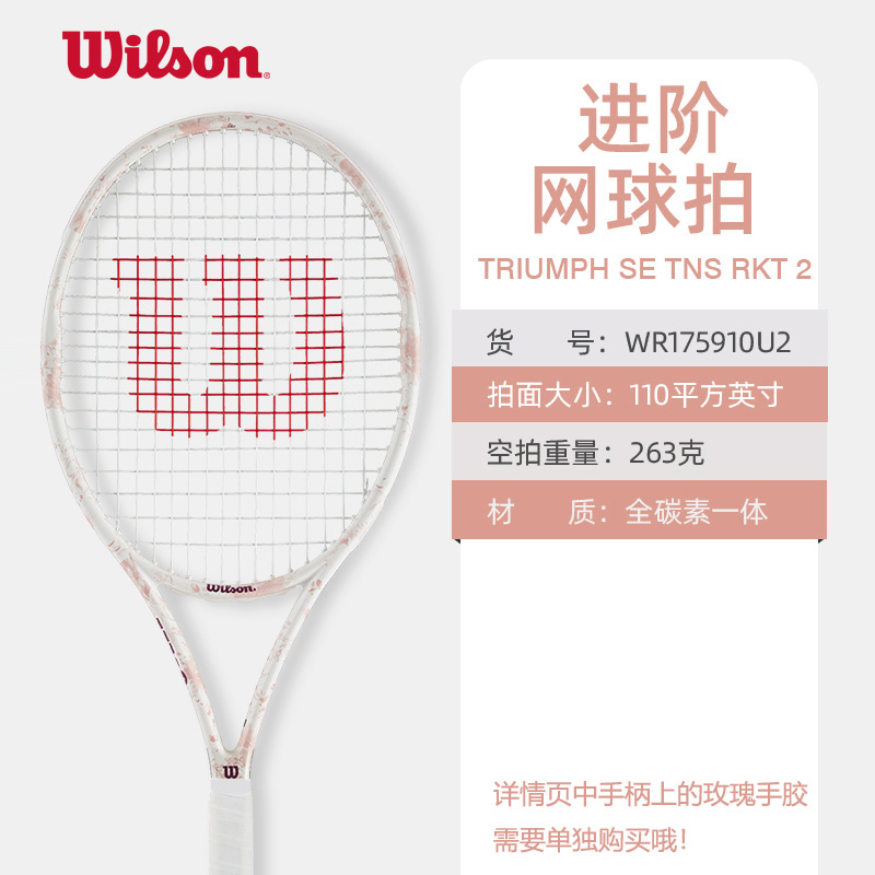 Wilson威尔胜网球拍 进阶拍男女全碳素一体网拍樱花系列 INTRIGUE SE 105/264 WR169410 樱花粉 成品拍 碳素材质,轻量舒适,加厚减震手柄,粉色涂装