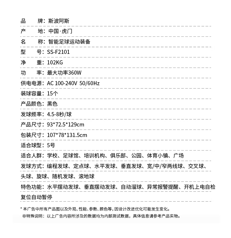 斯波阿斯足球发球机 智能足球自动发球机学校陪练器发射球练习器 SS-F2101 多种训练模式、智能感应发球
