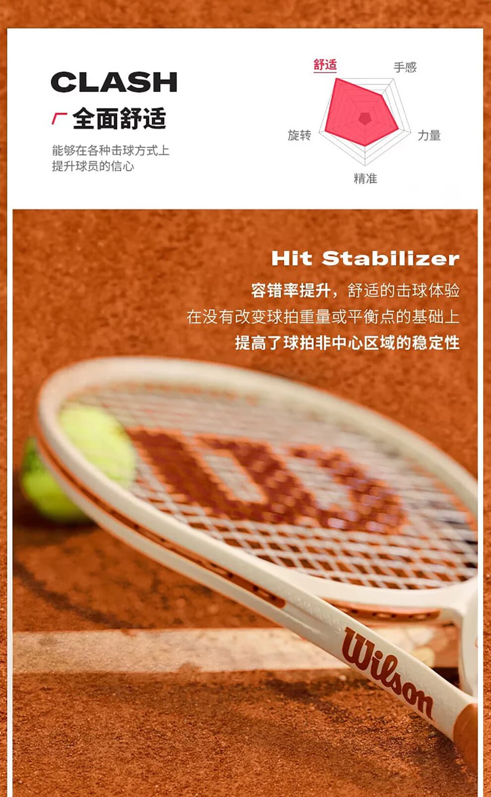 Wilson威尔胜网球拍 25款法网联名系列CLASH V3 女士单人专业全碳素网球拍100/295【全面舒适】 WR174011U2 奶油白