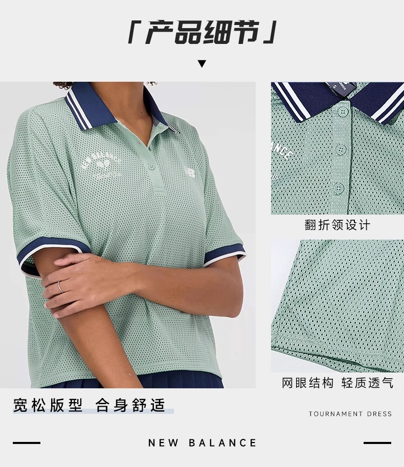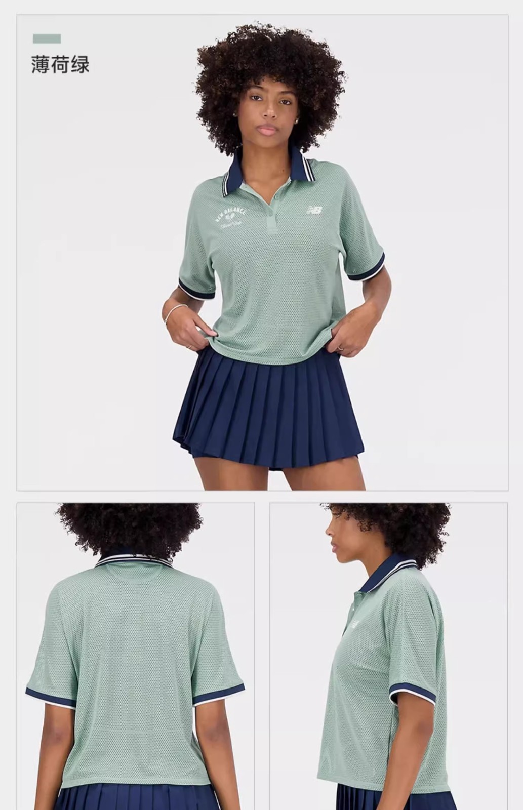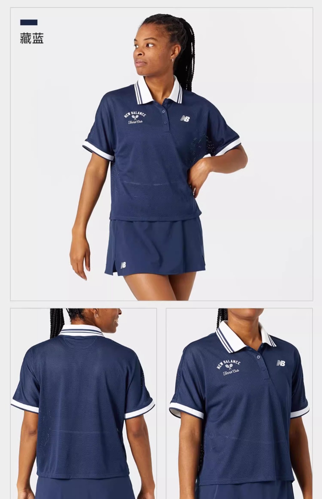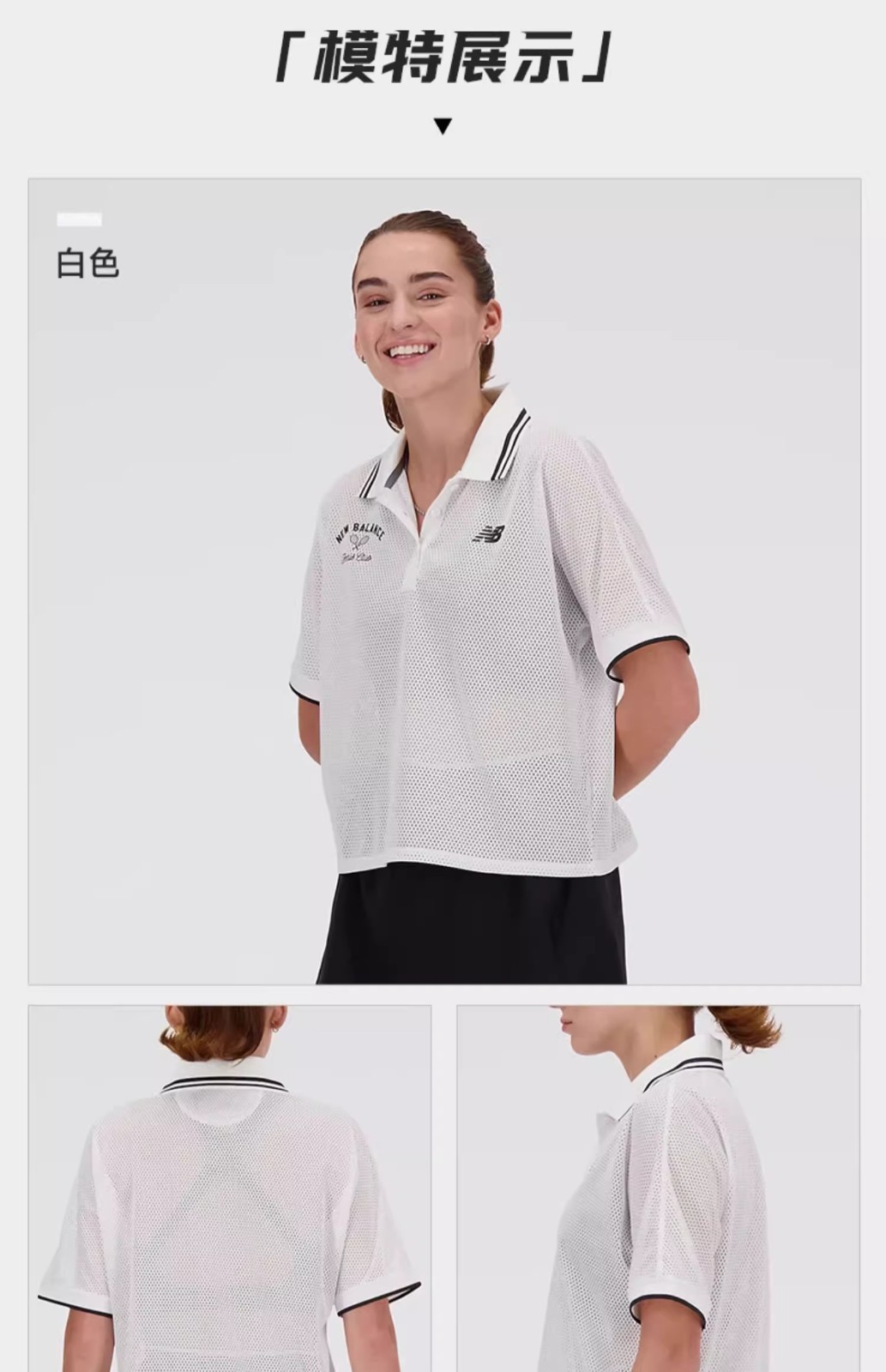 New Balance网球短袖 女子翻领短袖T恤镂空透气运动POLO衫 WT41404-WT 白色