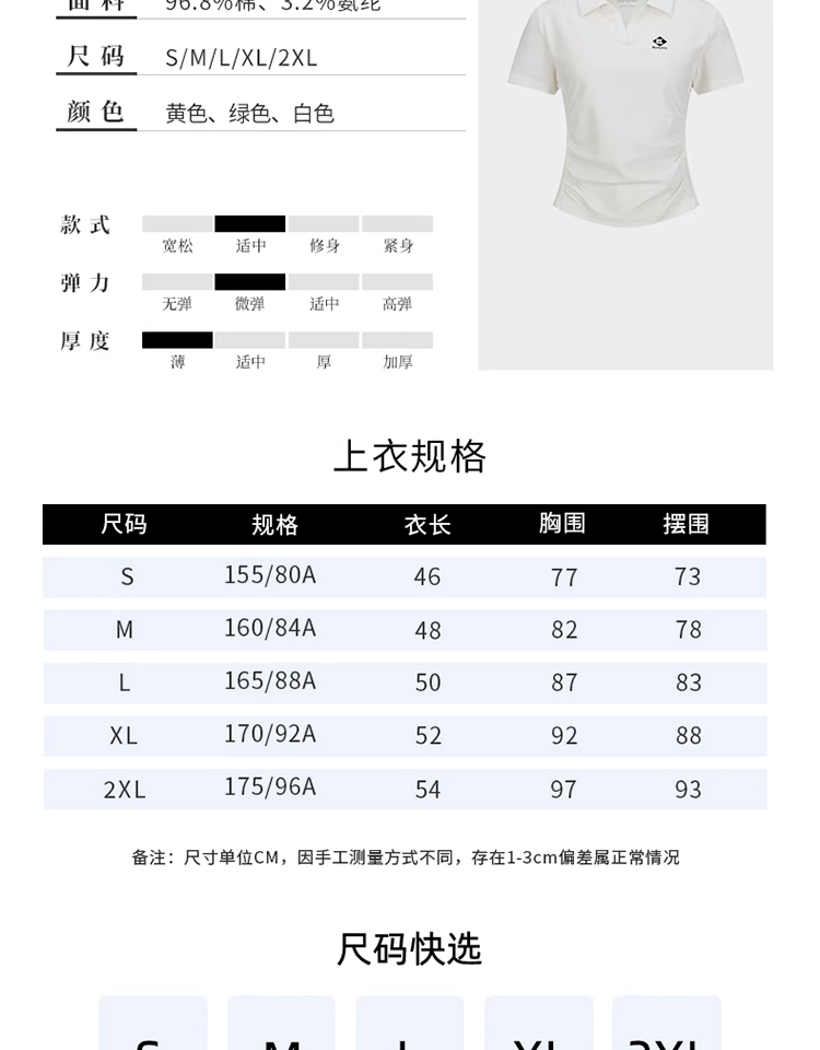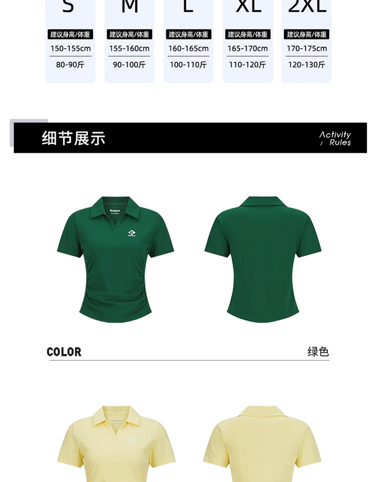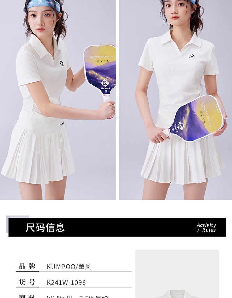KUMPOO薰风网球服 夏季速干短袖运动训练服女款短袖网球服 K241W-1096 黄色