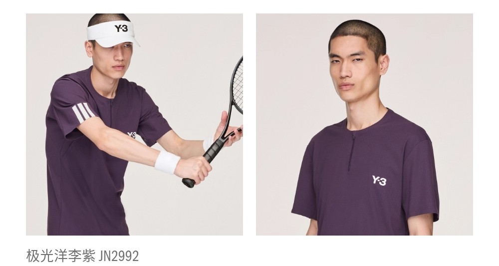 Adidas阿迪达斯网球服 Y-3山本耀司联名网球服男子25美网圆领半拉链速干运动短袖 JN2992 紫色
