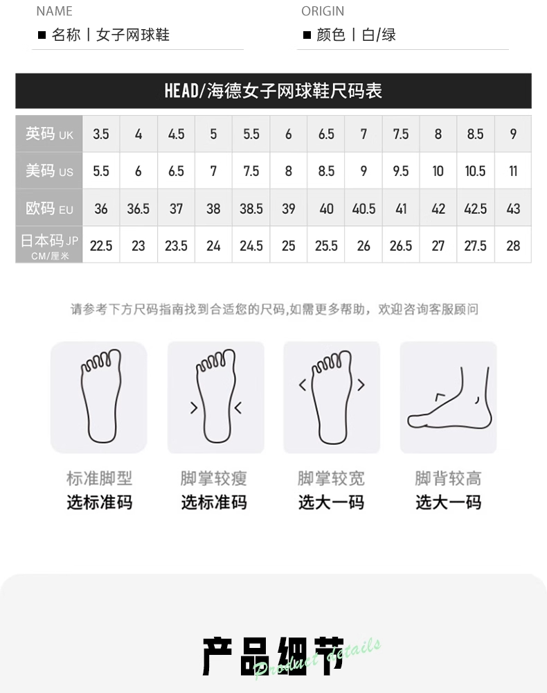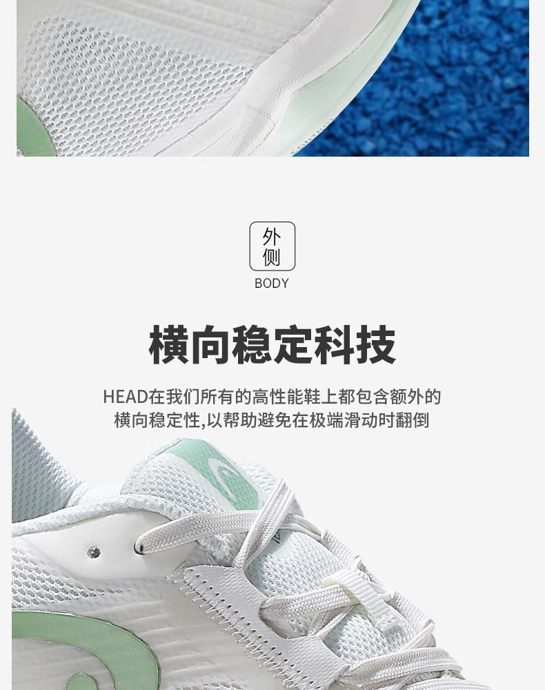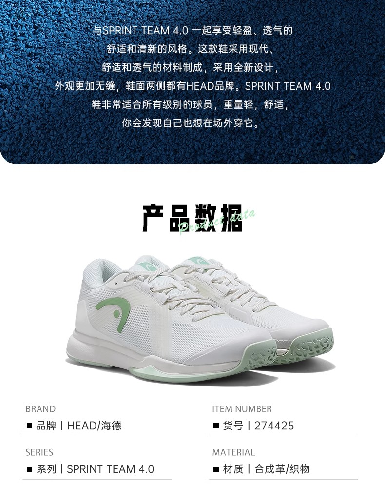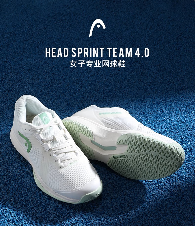 Head海德网球鞋 女子25新款Sprint Team 4.0耐磨透气专业运动鞋 274425 白/水绿