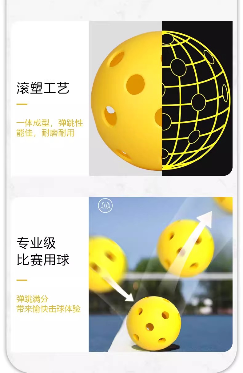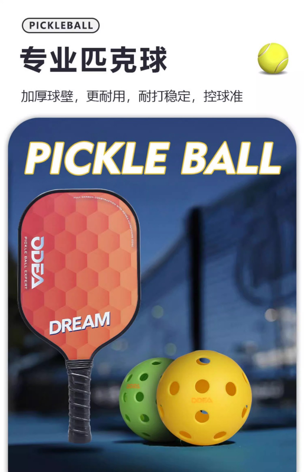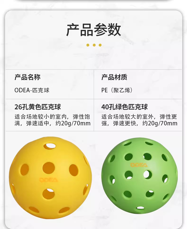 odear欧帝尔匹克球 匹克球拍专用球 加厚专业训练比赛洞洞球 26/40孔 12个/袋 多场地适用,耐打稳定