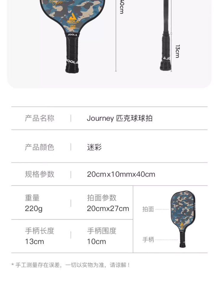 JOOLA优拉匹克球拍 USAPA认证新手入阶拍Journey-迷彩 单拍 18356