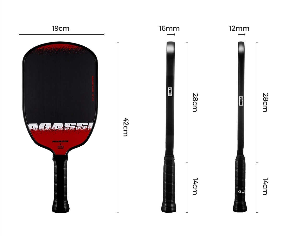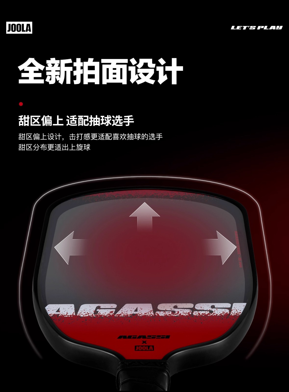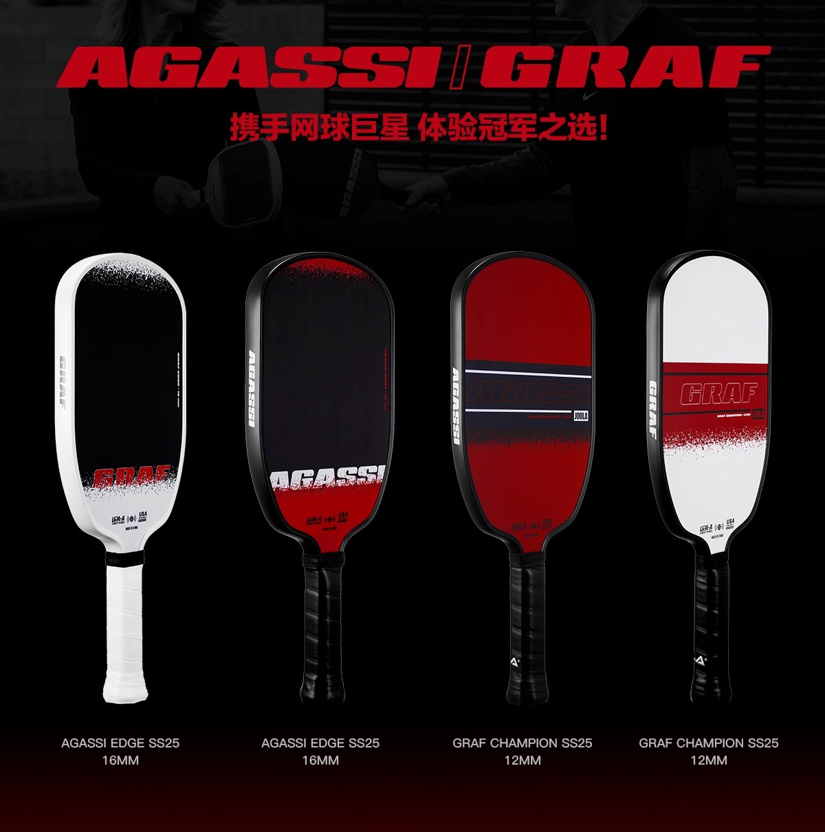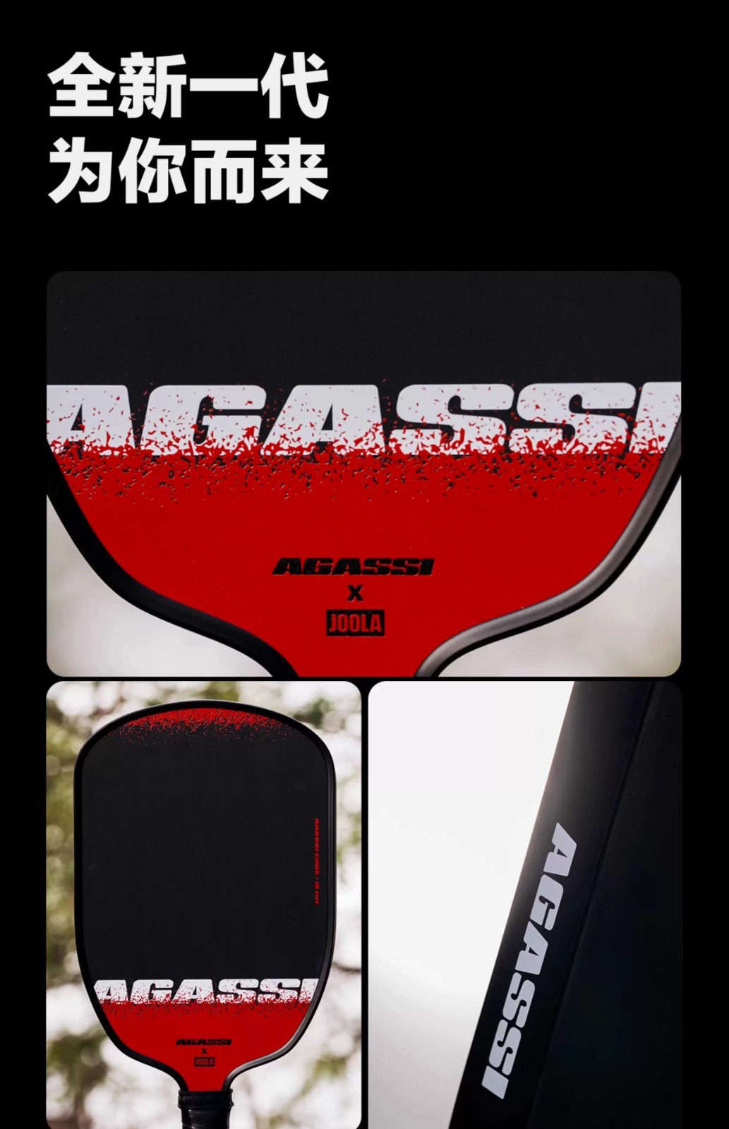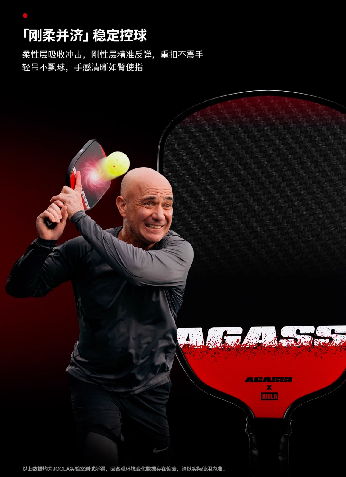 JOOLA优拉匹克球拍 阿加西/格拉夫联名款优拉匹克球拍板碳玻纤双认证新手进阶级球拍 单支装 12mm 黑红色/白黑红
