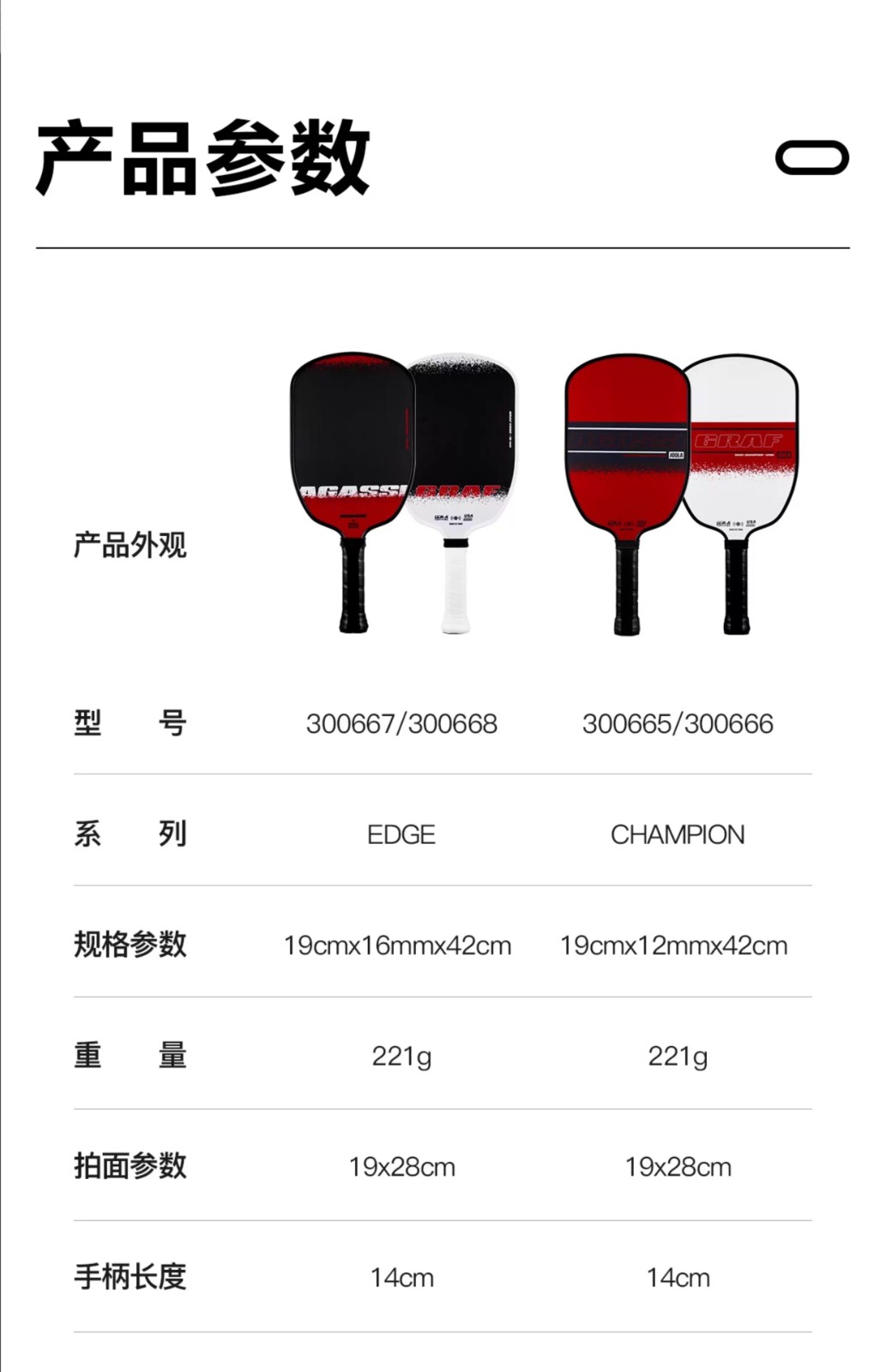 我们为您精心打造了两款进阶和专业选手的匹克球拍板