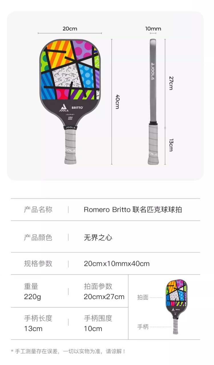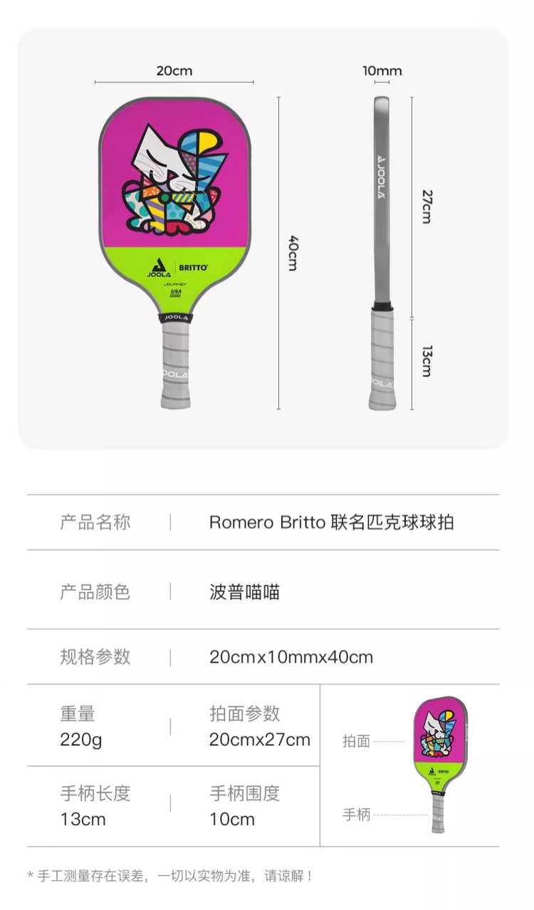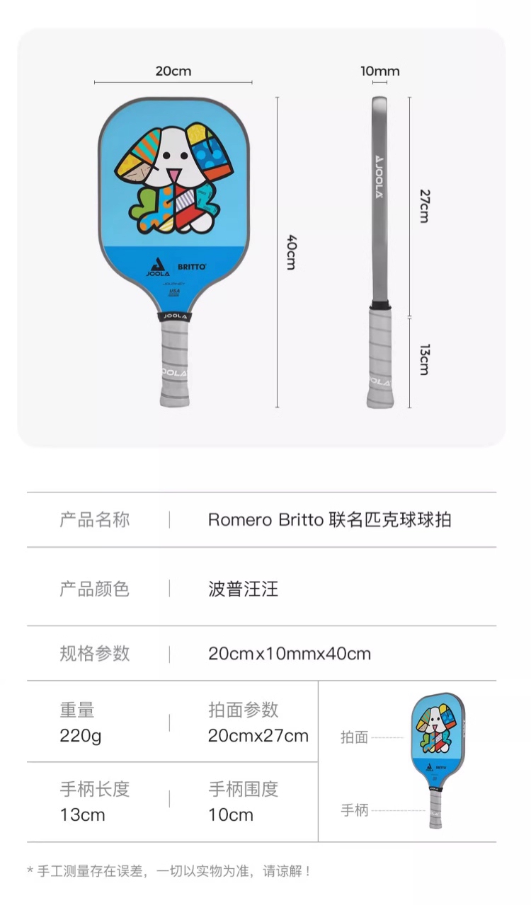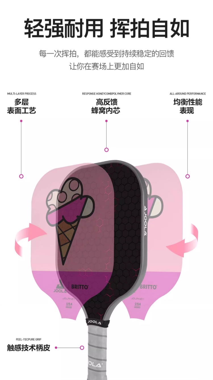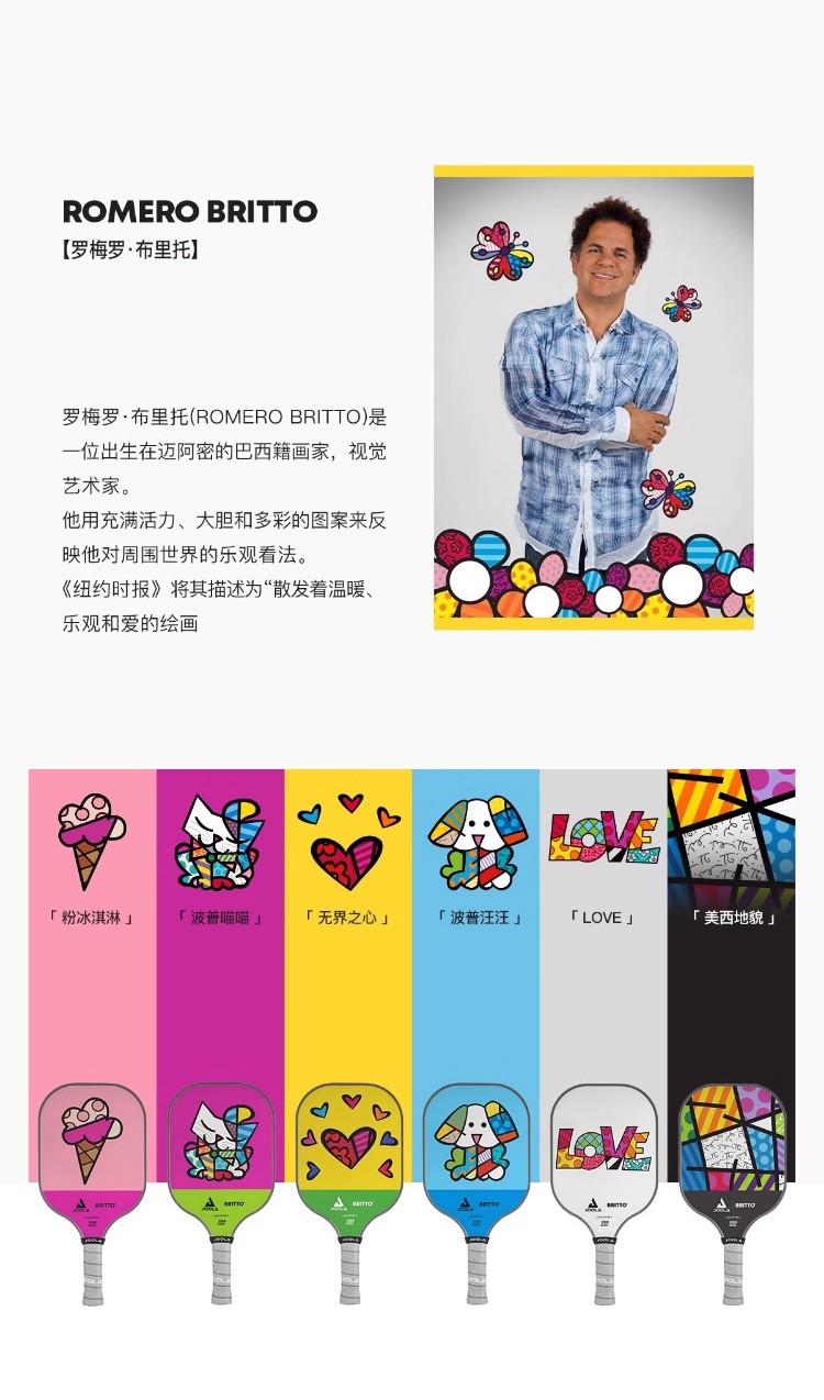 JOOLA优拉匹克球拍 布里托联名匹克球拍玻璃纤维高颜值初学进阶球拍 单支装(6色可选)