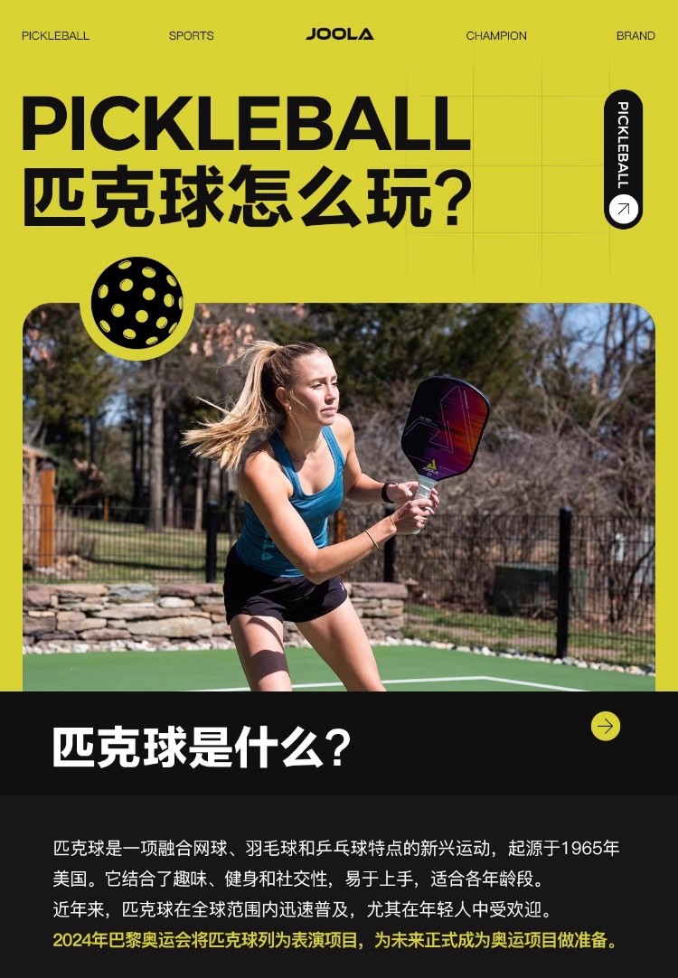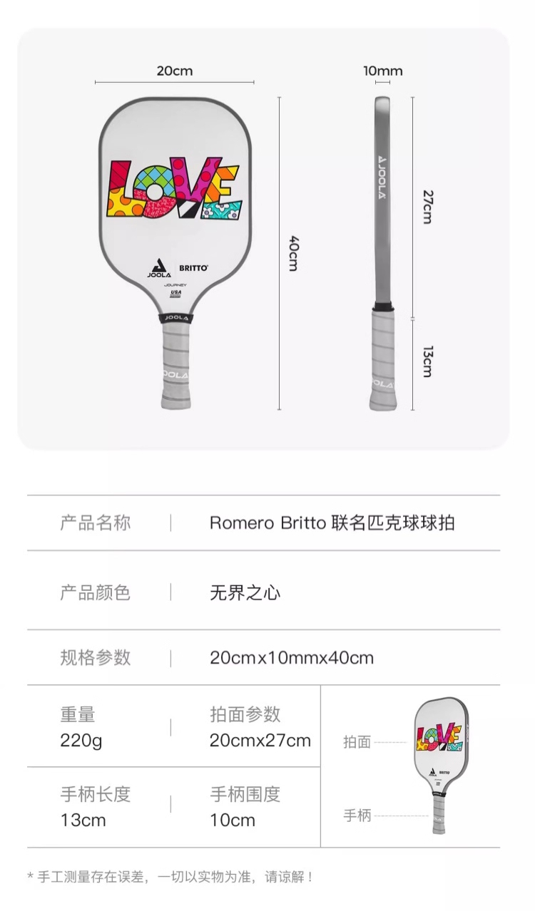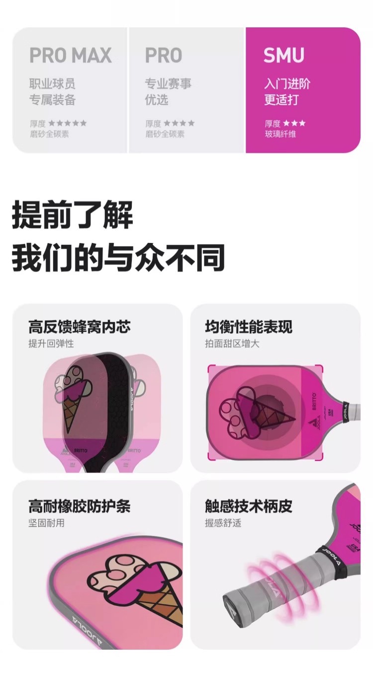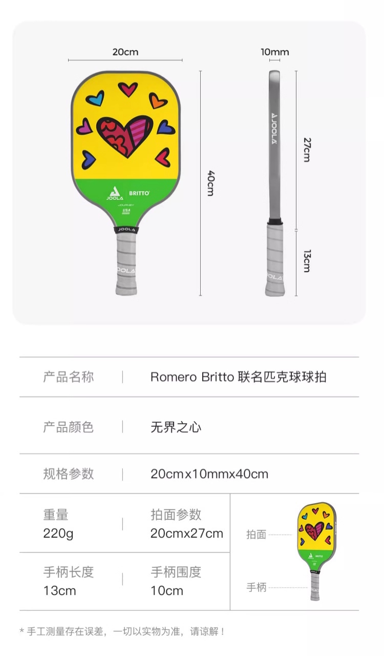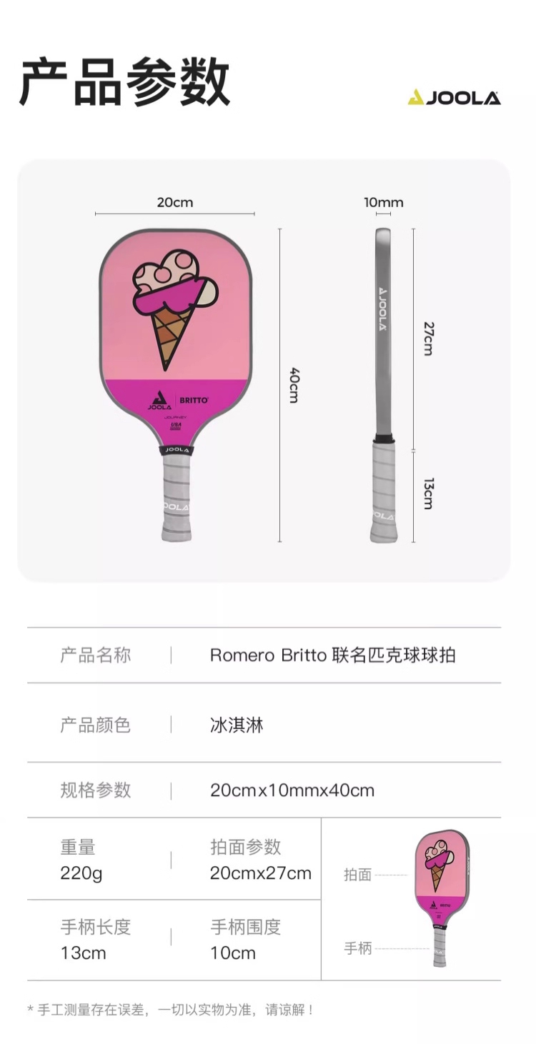 JOOLA优拉匹克球拍 布里托联名匹克球拍玻璃纤维高颜值初学进阶球拍 单支装(6色可选)