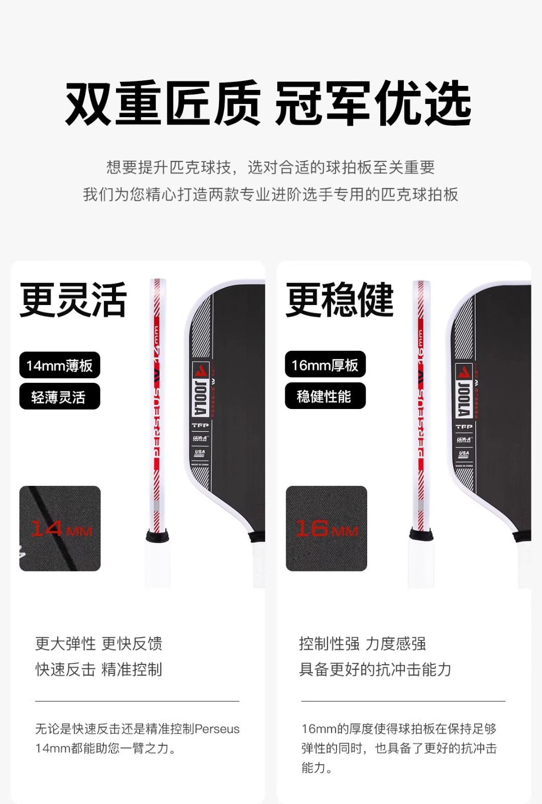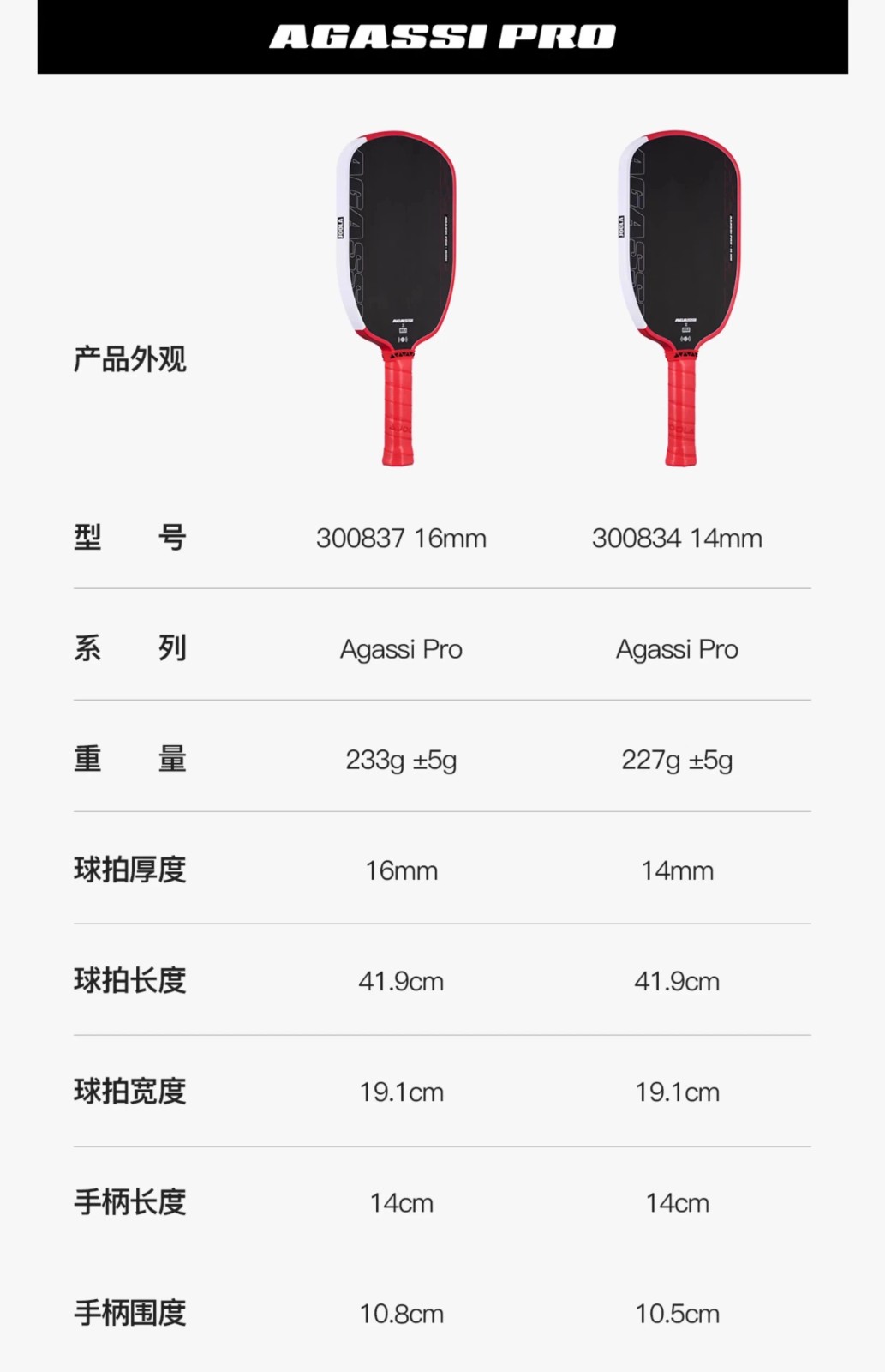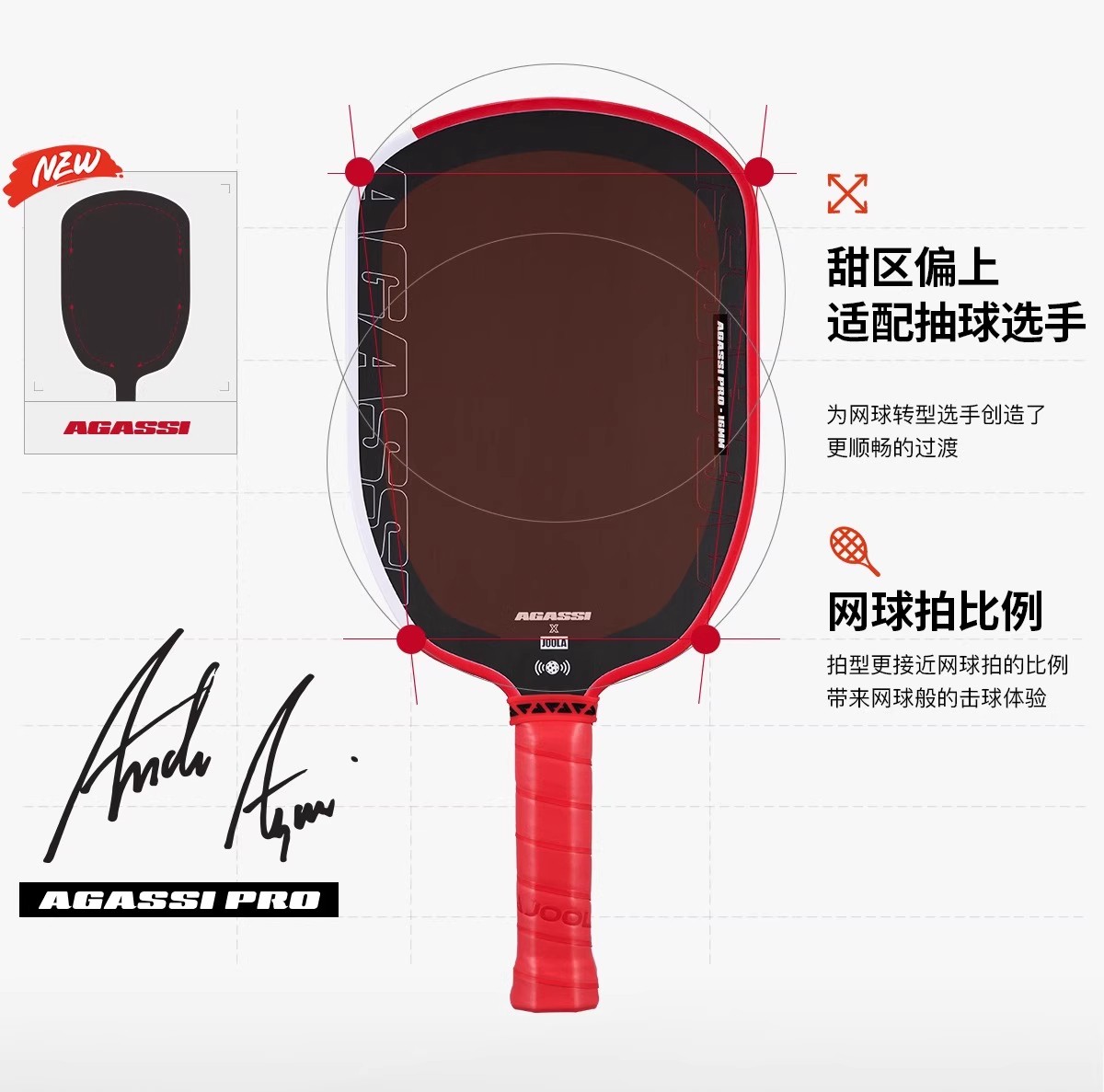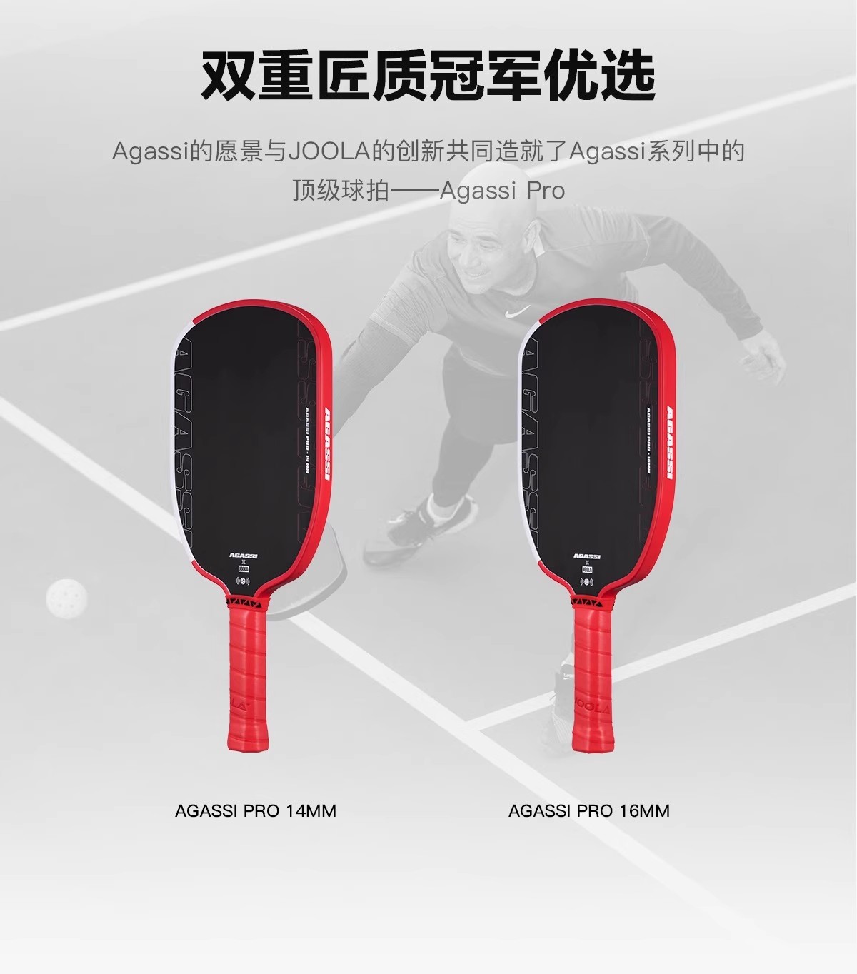 JOOLA优拉匹克球拍 阿加西同款Agassi Pro碳纤USAPA/UPA双认证专业匹克球拍 16mm 300837 1支装 阿加西同款Agassi Pro 适配抽球选手 双认证专业球拍