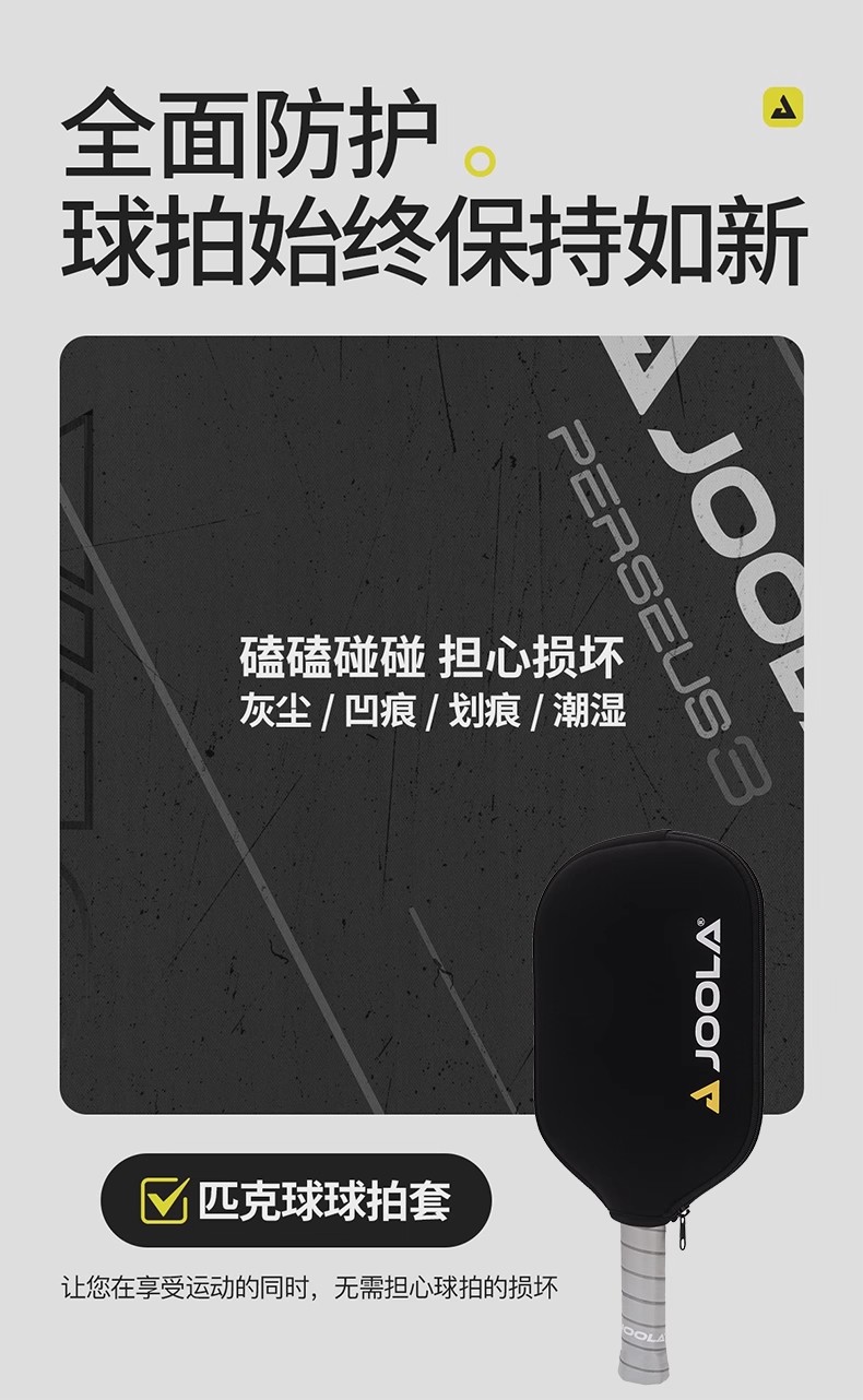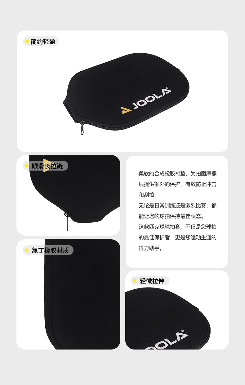 JOOLA优拉匹克球拍拍套 基础款防刮防磕有拉链黑色高弹简约保护套 17416 黑色 隔离灰尘 预防凹痕 防止划痕 防潮防霉