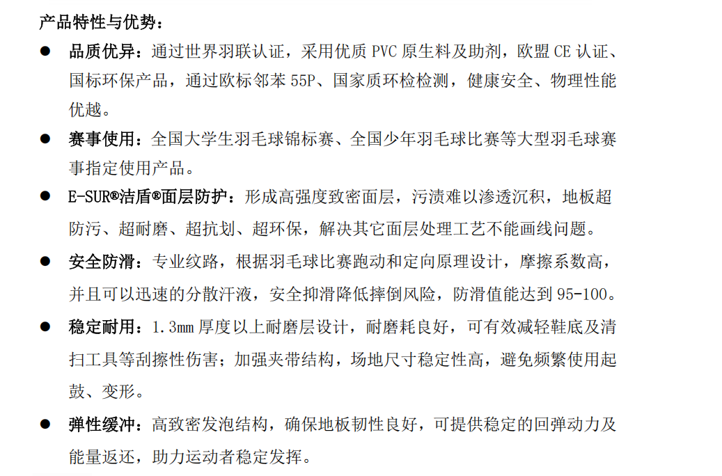 品质优异:通过世界羽联认证,采用优质 PVC 原生料及助剂,