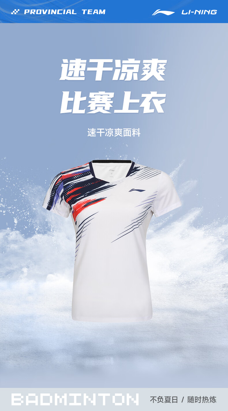 LI-NING 李宁 羽毛球服 女款 速干短袖T恤 比赛训练运动上衣 AAYV048-1 深紫蓝 速干凉爽 穿着舒适