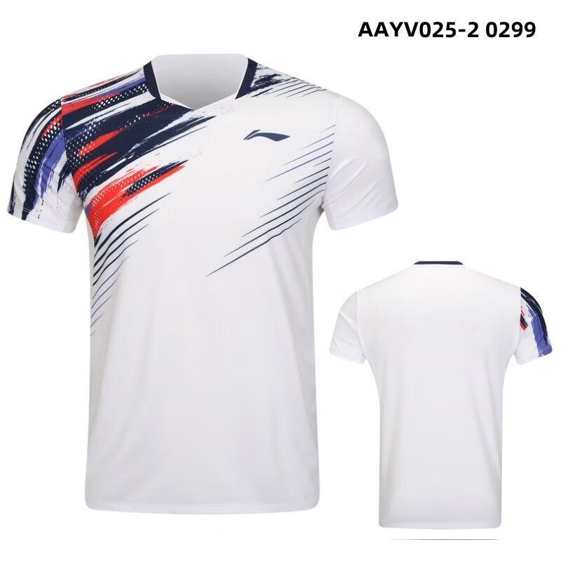 LI-NING 李宁 羽毛球服 中性款 速干短袖T恤 比赛训练运动上衣 AAYV025-2 标准白 吸湿排汗 速干透气舒适