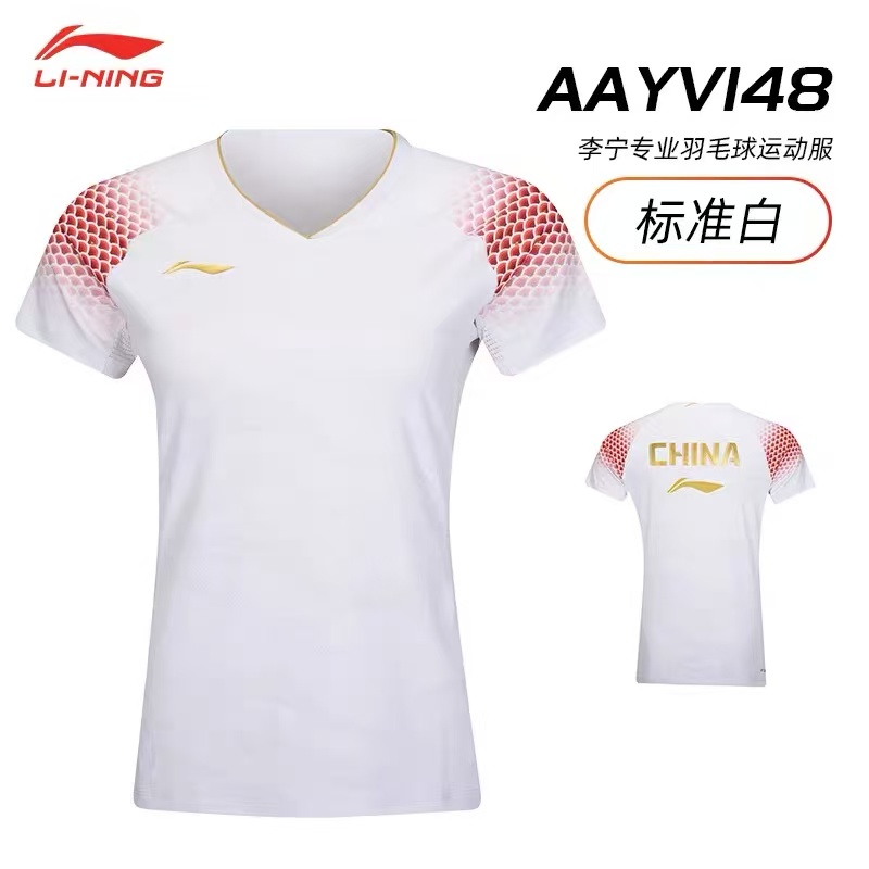 LI-NING 李宁 羽毛球服 中青队大赛服 女款 速干短袖T恤 比赛训练运动上衣 AAYV148-2 标准白 吸湿排汗 速干透气舒适