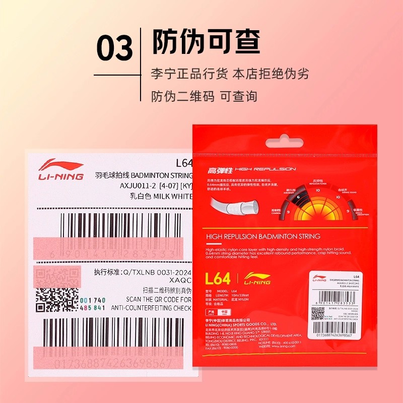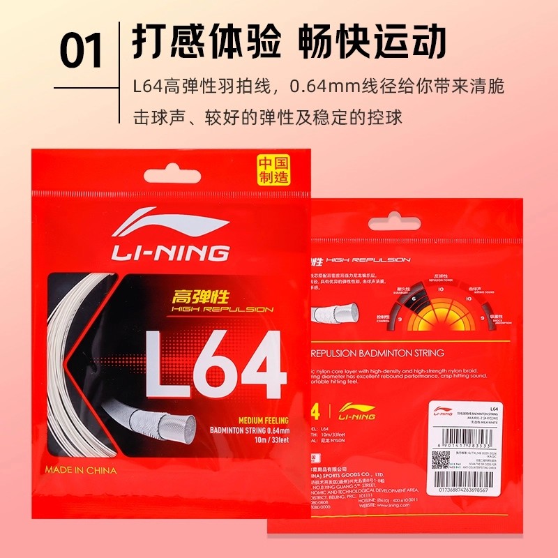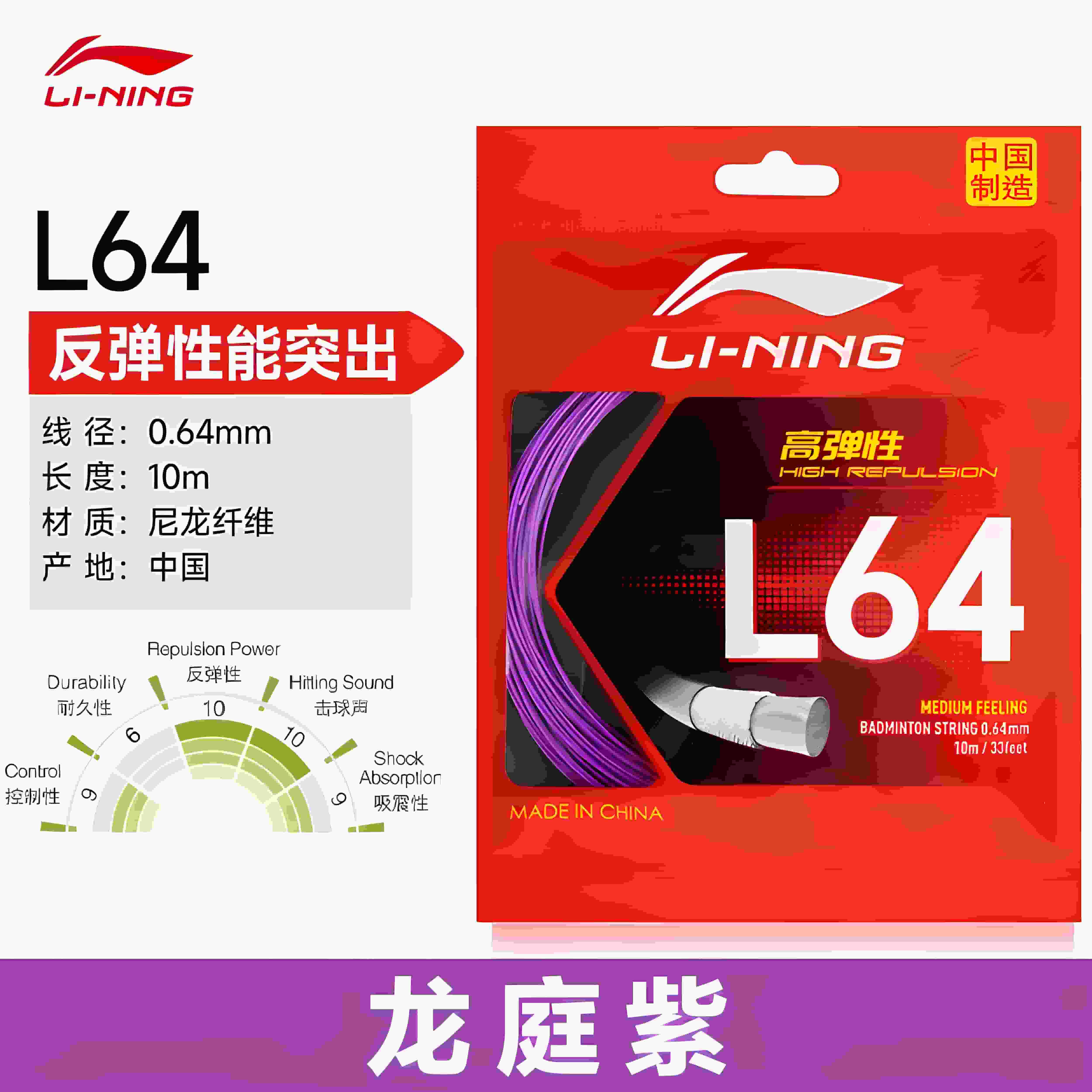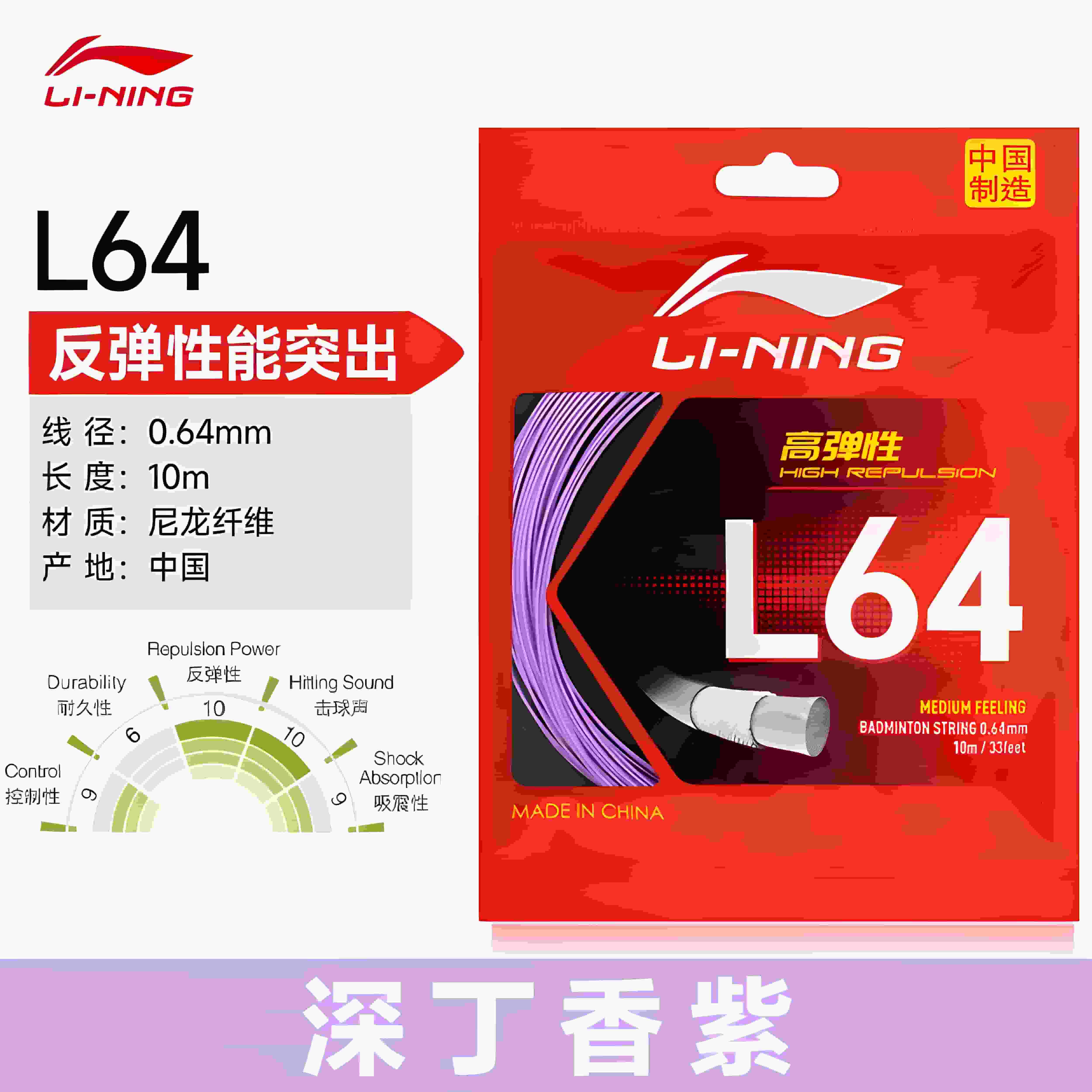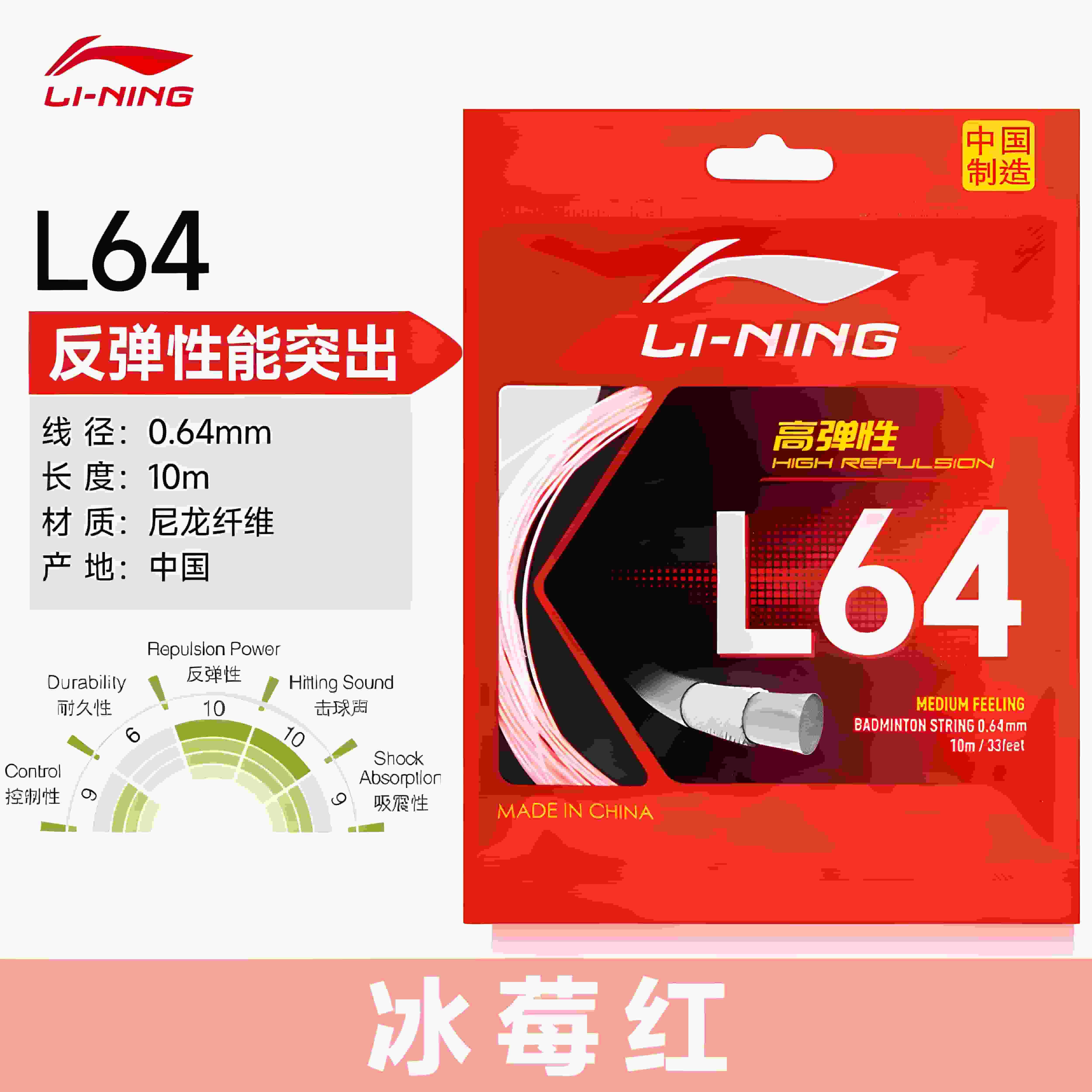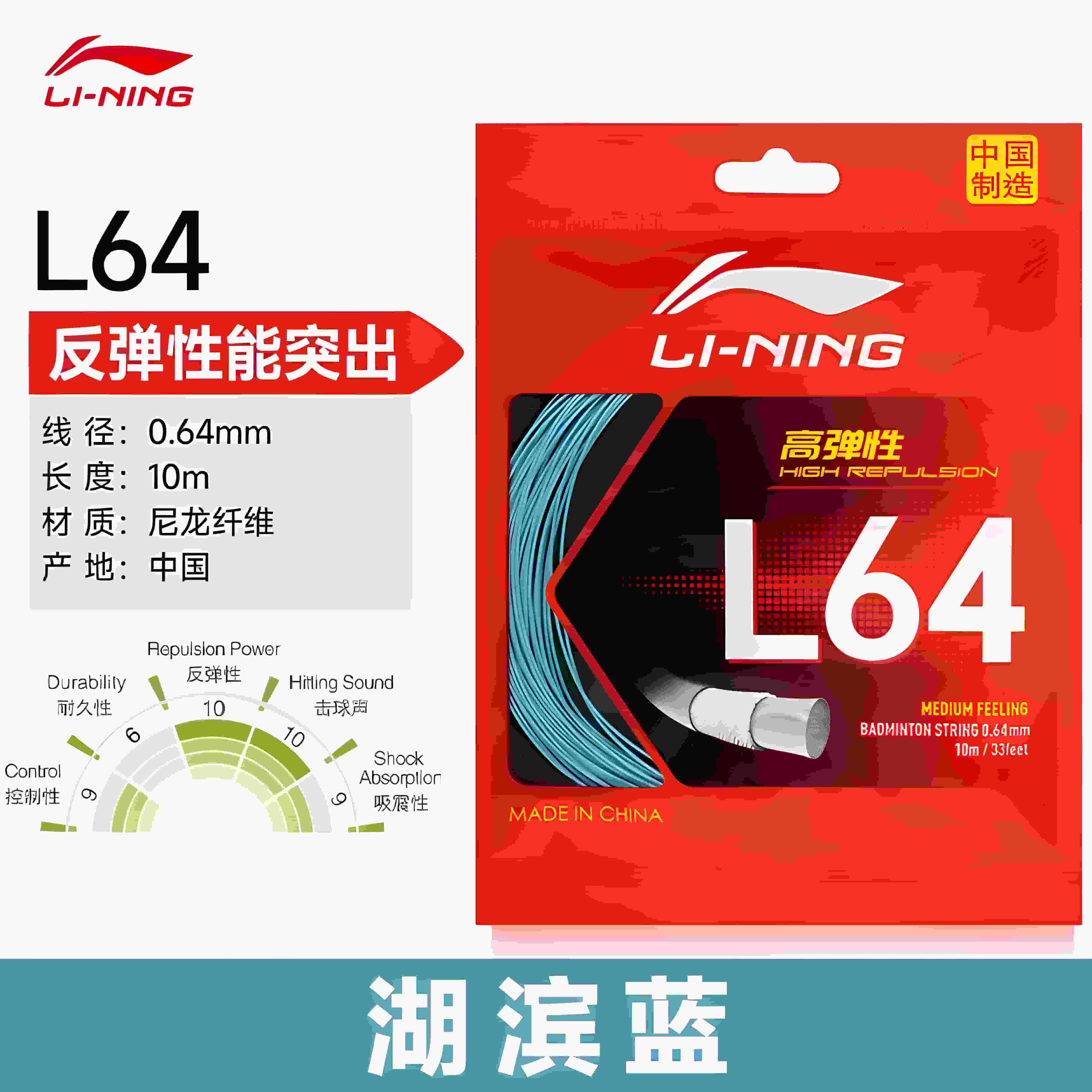 LI-NING 李宁 羽毛球线 耐打羽线 专业比赛训练 高反弹 L64 0.64mm 单条装 冰脂绿 高反弹型羽线,击球声清脆,击球手感舒适